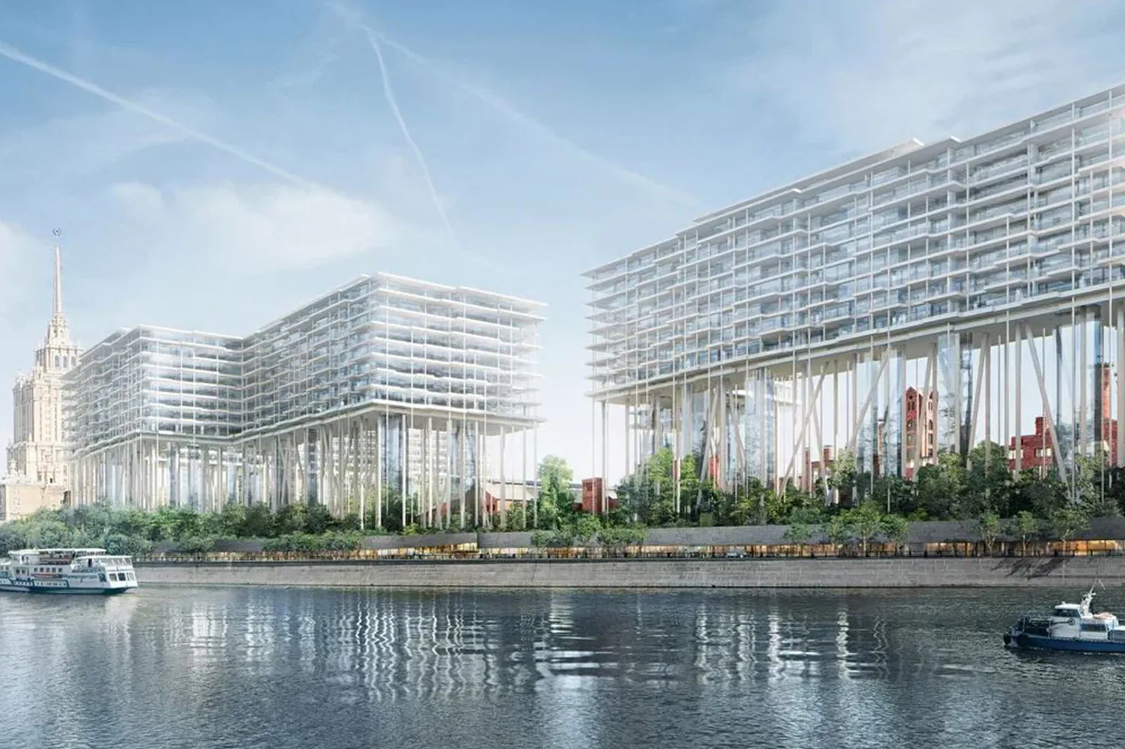 Жилой комплекс «Бадаевский» – проект с «парящими» домами-«лентами» на 35-метровых тонких колоннах. Благодаря такому архитектурному решению, в районе Дорогомилово появится масштабный парк, а первый этаж нового строительства расположится на уровне 10-го этажа обычного жилого дома. Девелопером проекта выступает компания Capital Group.