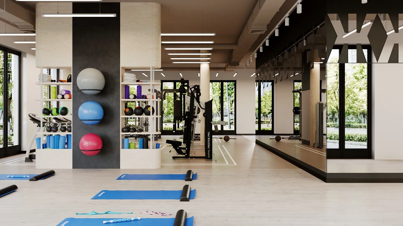 В одной из башен ЖК на первом этаже разместится «Гостиная для души и тела» – полноценное фитнес-пространство, в котором спроектированы несколько спортивных зон с раздевалками, душевыми и санузлами, зона отдыха и фитобар со столиками. Будущим жителям будут предложены на выбор тренажерный зал, зона свободных весов и зона crossfit, оснащенные современным спортивным оборудованием, а также укомплектованный необходимым инвентарем зал для йоги и растяжки. Пространства рассчитаны как на индивидуальные, так и на групповые тренировки.