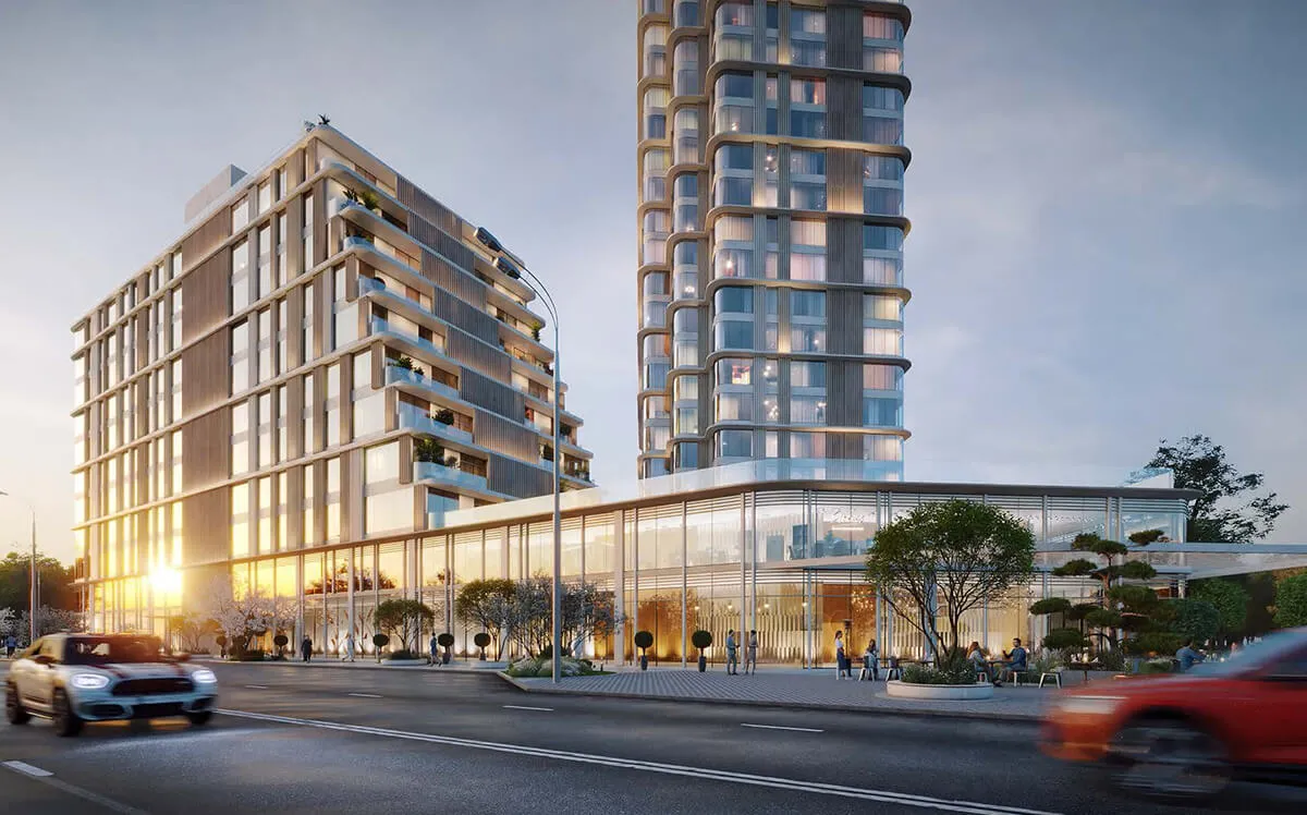 Вдоль коммерческого фронта первых этажей будет создано открытое общественное пространство – камерная городская плаза с теневыми навесами и мобильной мебелью для комфортного отдыха. Это позволяет создавать различные сценарии использования пространства: в тени деревьев-крупномеров можно провести бизнес-встречу, отдохнуть с детьми или почитать книгу. В проекте также запланировано инновационное освещение: хромированные металлические светильники станут дополнением футуристического концепта.
