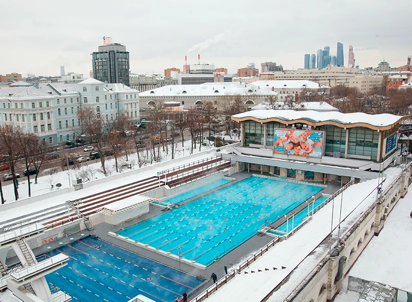 Одно из самых известных мест, где можно плавать даже в снегопад и лютый мороз, находится в спортивном центре «Чайка». Первоначально он был построен по проекту архитектора Бориса Топаза и конструктора Юрия Дыховичного к Всемирному фестивалю молодежи и студентов в 1957 г. Множество классических элементов этого здания гармонировали с наземным вестибюлем станции метро «Парк Культуры». Но к летним Олимпийским играм 1980 г. проект реконструировали в духе позднего конструктивизма, а у спортивного центра появилась стеклянная надстройка с дугообразными деревянными перекрытиями, символизирующими волну.