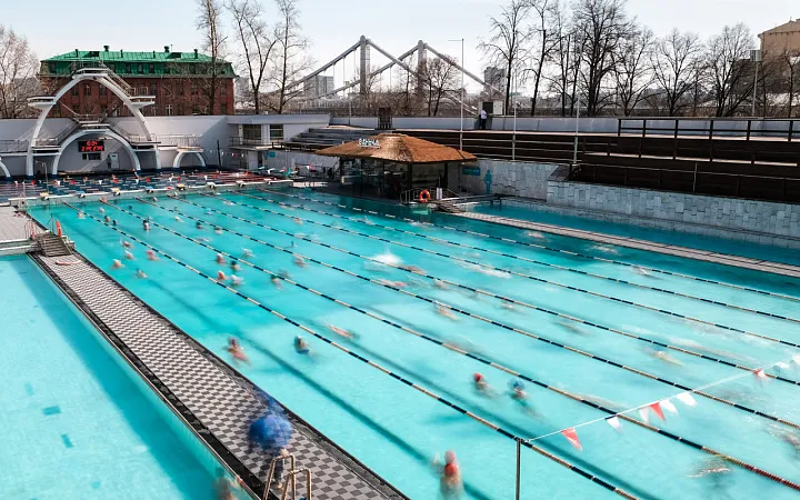 Первые сеансы свободного плавания здесь начинаются уже в 7 утра — успеть в открытый бассейн, например, перед работой. Температуру воды в бассейне всегда в районе 28 градусов, поэтому плавать с комфортом можно даже в самый непогожий день. Пенсионеры часто приходят сюда поддержать здоровье полезными водными процедурами, а рядом с ними ныряют компании студентов. Кто-то посещает бассейн исключительно зимой, а другие лишь забегают освежиться в летние месяцы.