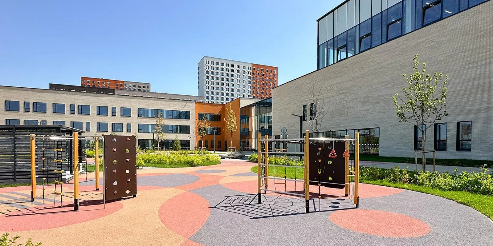 Особое внимание уделят вопросам безопасности. Во всех зданиях смонтируют системы охранного телевидения и освещения, контроля и управления доступом, а также видеодомофонной связи. Помимо этого, организуют посты охраны с тревожной кнопкой и средствами досмотра. Прилегающую территорию благоустроят и озеленят: высадят деревья и кустарники, разобьют газоны. В образовательных учреждениях смогут обучаться дети с ограниченными возможностями здоровья.
