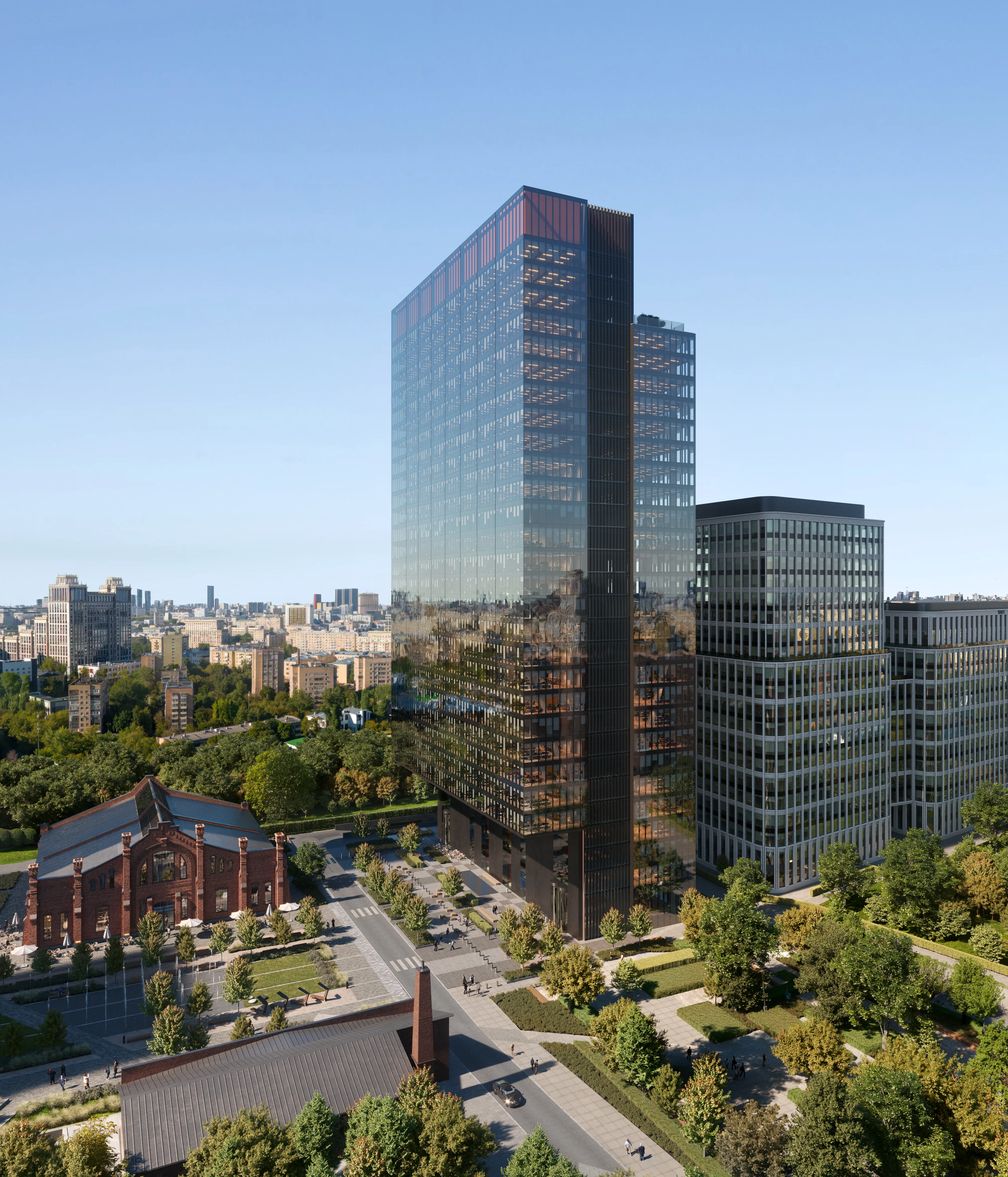 «Специальные материалы для фасада здания и применение терракотового цвета позволят достичь гармонии между современным офисным пространством и инфраструктурой, а также реставрируемых индустриальных мастерских. Такой дизайн позволит сохранить единый облик городского квартала. Помимо делового кластера, он соединяет в себе жилое пространство, торговые и досуговые площадки», – рассказал Сергей Кузнецов.