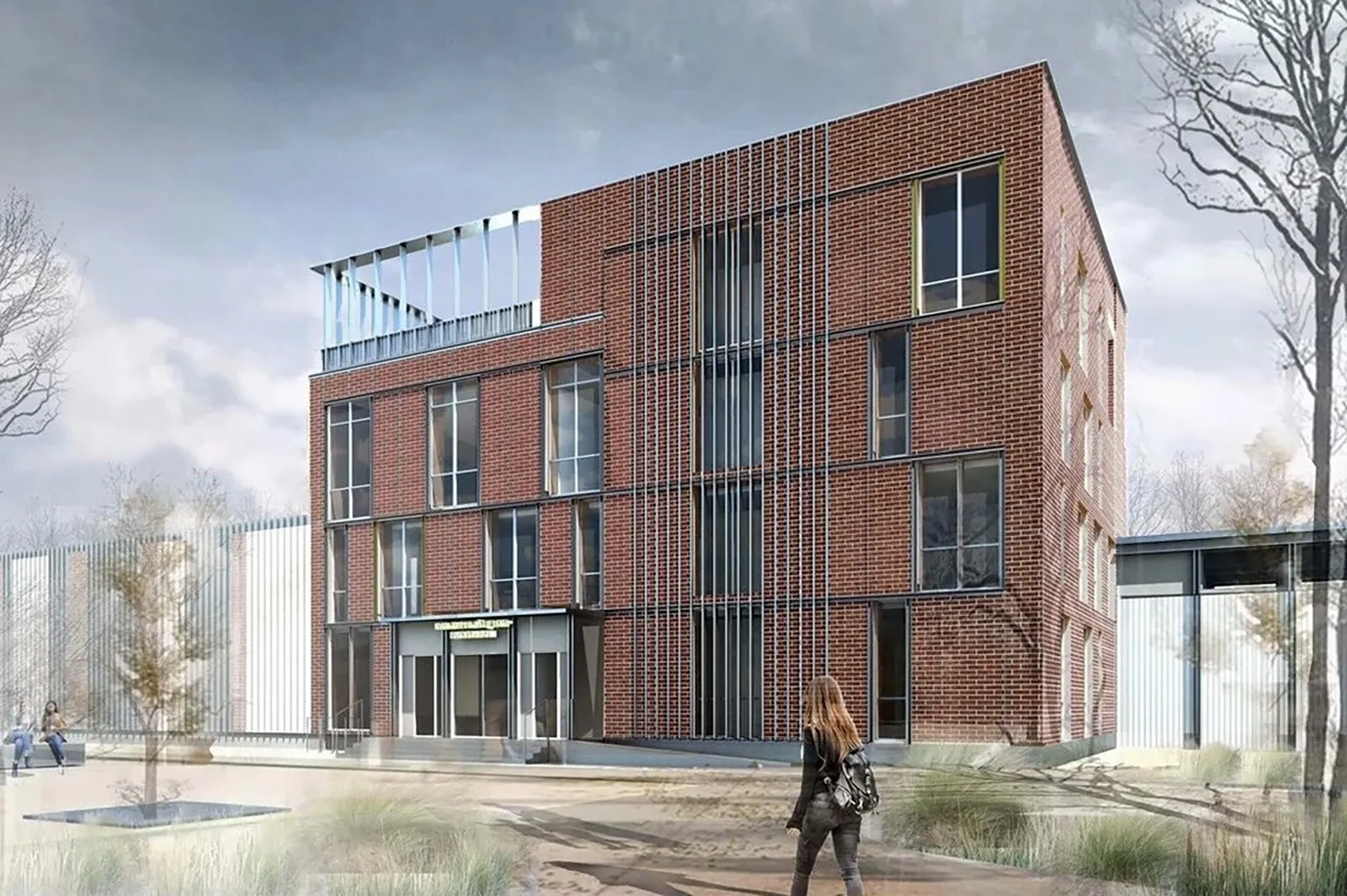 Кровлю сделают частично эксплуатируемой: на четвертом этаже обустроят открытую смотровую площадку с видом на прилегающую территорию. Вокруг здания установят наружное освещение и малые архитектурные формы, разобьют газоны, высадят деревья и кустарники.