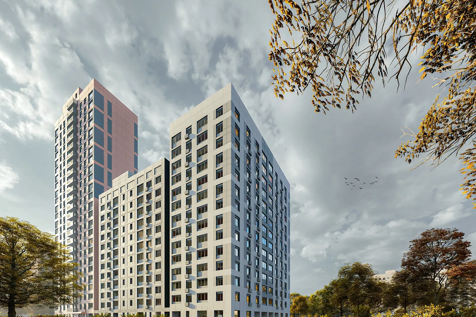 Пятисекционное здание рассчитано на 555 квартир: 222 однокомнатные, 249 двухкомнатных и 84 трехкомнатные. На первом этаже оборудуют колясочные и места для хранения уборочного инвентаря. Входные группы сделают сквозными, с двойными тамбурами.