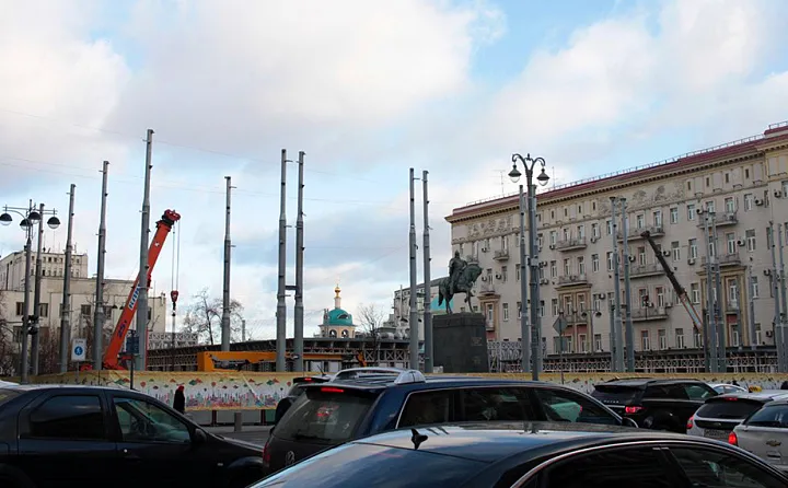 Растут леса за памятником поэту на Пушкинской площади. А напротив, в начале Тверского бульвара, строят дворец