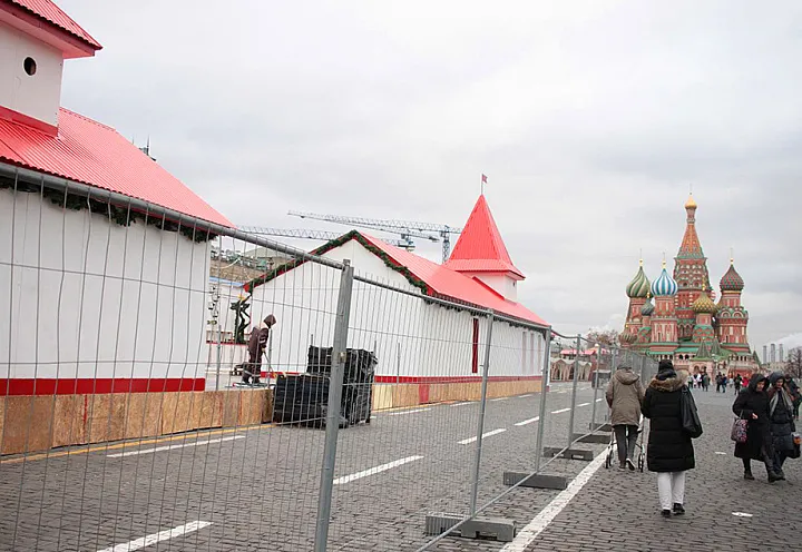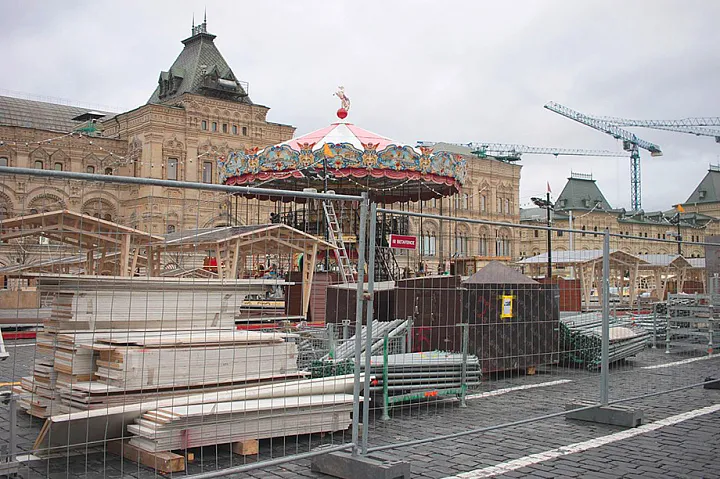 На Красной площади строят увеселительный городок с традиционными катком и каруселью