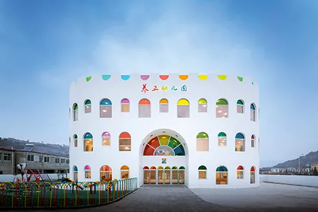 Одним из последних событий в архитектурном мире страны стало открытие в 2024 году здания детского садика в Тяньшуе. Автором проекта выступила японская студия SAKO Architects. Он получил название Kaleidoscope Kindergarten. Его отличают яркие краски и необычный «кулинарный» декор. Здание вообще напоминает праздничный торт, разноцветной глазурью в его фасадах являются 438 фрагментов из цветного стекла. На крыше площадью более 2770 кв. метров работает детская игровая площадка с видами на город. Многофункциональный атриум окружен классными комнатами. Он оборудован системой подогрева пола и кондиционирования воздуха. Это пространство может использоваться для различных мероприятий. Стеклянный потолок пропускает естественный свет, а поскольку солнечные лучи распространяются под разными углами, свет перемещается от вертикальной поверхности стен до горизонтальной, образуя длинные и короткие цветные тени. Пространство меняется каждую минуту в течение дня и похоже на гигантский вращающийся калейдоскоп с мерцающими оттенками и узорами. «Наша цель – вдохновлять детей на творчество. Мы ожидаем, что этот детский сад сможет стать новой достопримечательностью города Тяньшуй», – считают японские архитекторы.