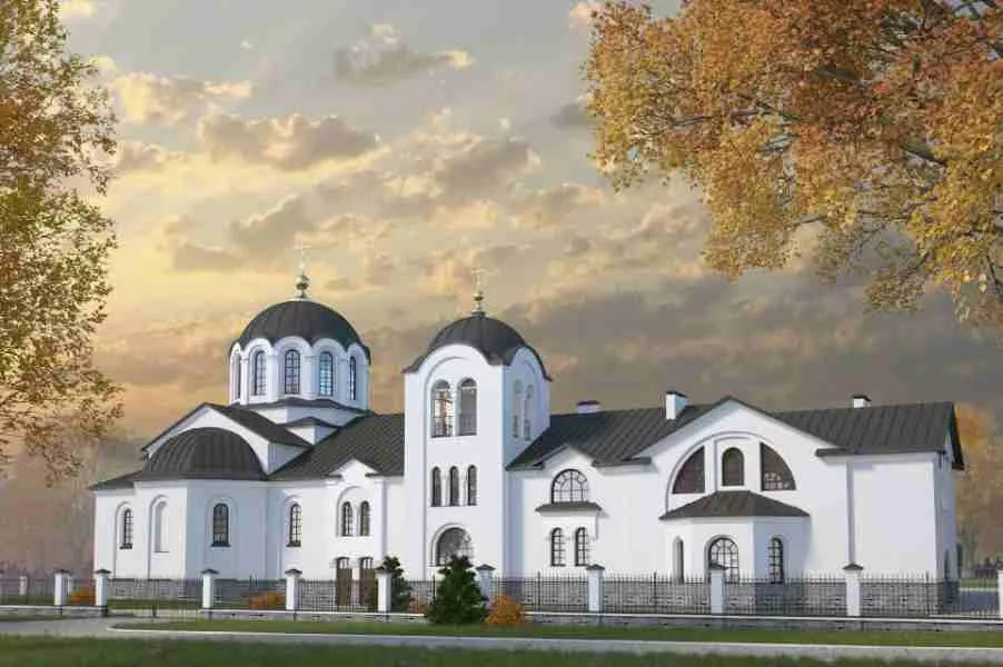 Одноэтажный храм со звонницей рассчитан на 500 прихожан. Проект не предусматривает подвала, однако в основном объеме здания устроят балкон для хора. К храму пристроят двухэтажное приходское здание. На первом этаже разместят крестильный храм, трапезную и приходские помещения, на втором – классы воскресной школы.
