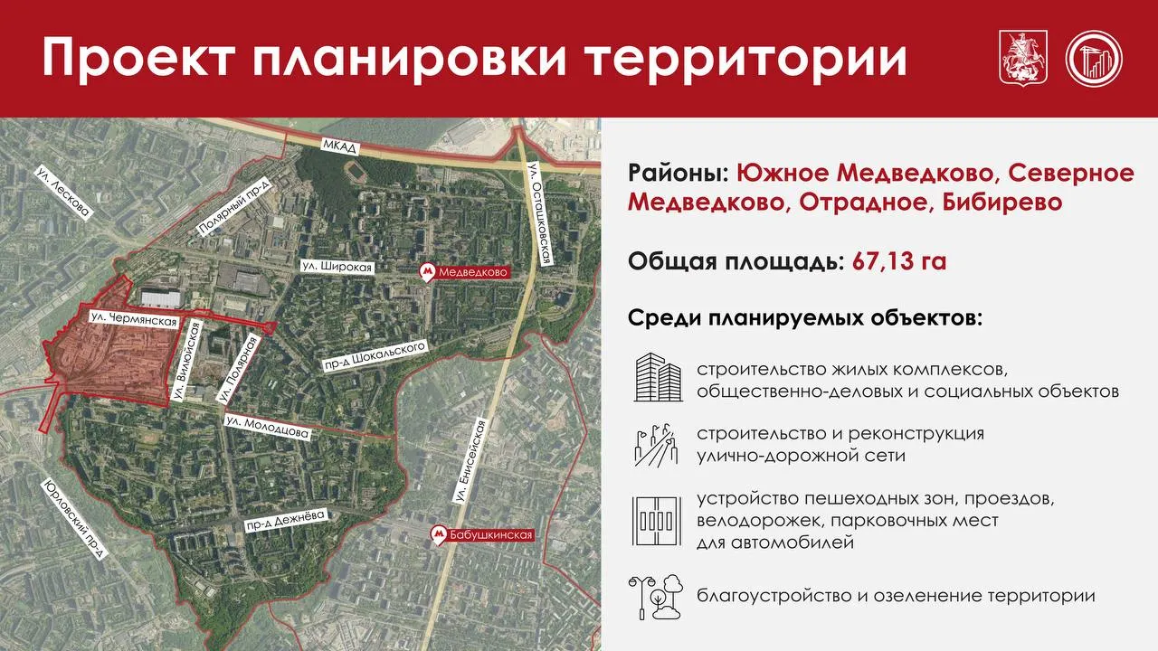 «На проектируемой территории, ограниченной улицами Вилюйской, Чермянской, Молодцова и Полярным проездом, появятся жилые комплексы, общественно-деловые и социальные объекты, включая школу, детские сады, поликлинику и подстанцию скорой помощи, культурно-досуговый центр», – написал мэр.