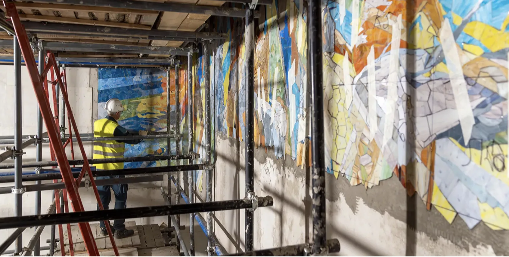 На станции метро «Университет дружбы народов» начался монтаж мозаичного панно