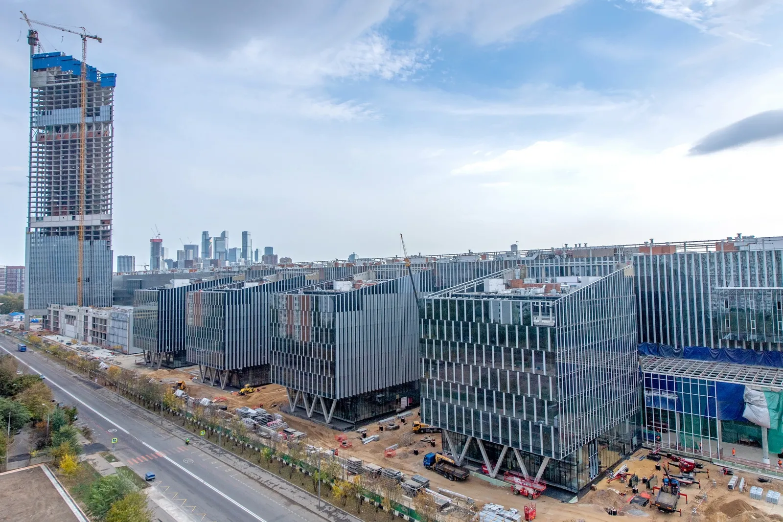 Для обеспечения качества и безопасности производства работ на высоте применяется современное технологическое оборудование – специально спроектированная и изготовленная ветрозащитная система, позволяющая вести работы в круглосуточном режиме и при любых погодных условиях. Общая площадь комплекса зданий НКЦ – более 250 тыс. кв. метров.