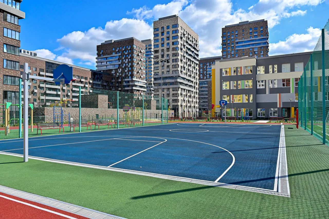 На территории расположены игровые площадки, отличная спортивная инфраструктура. У детей со всего района появилась возможность заниматься любимыми видами спорта.