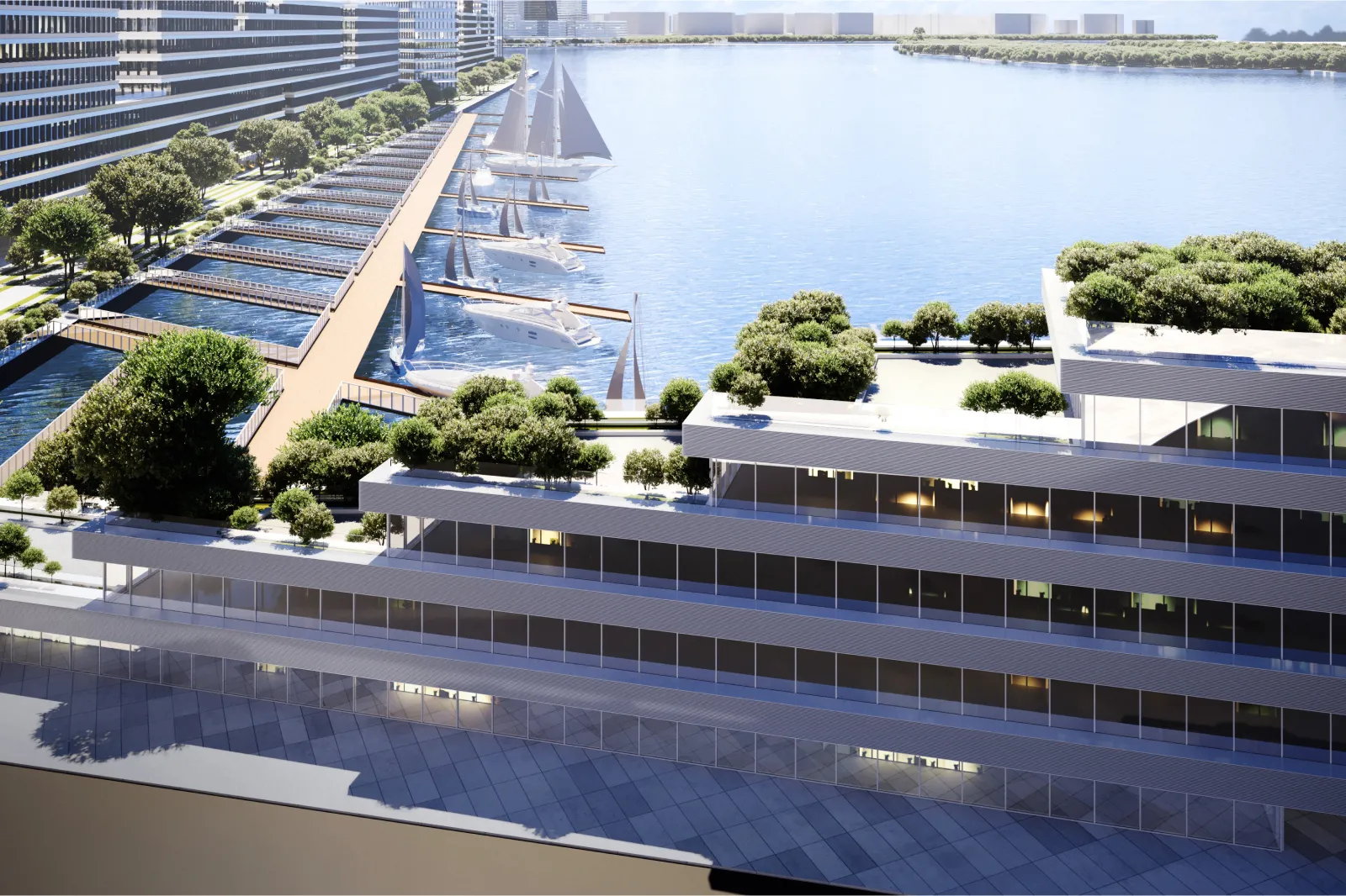 «Работая над набережной кластера «Южный порт», мы задумались о том, какую новую по качеству территорию можем здесь создать. Мы хотели сделать среду уникальной во всех аспектах, сформировать пространство с новой философией, место, где можно комфортно жить, работать и отдыхать. Разработали порядка трех разных пространственных подходов, но в итоге остановились на идее частично линейного квартала с ярко выраженным акцентом на уровне земли, на уровне среднеэтажной и малоэтажной части, которую мы назвали «горизонтальным небоскребом». Он помог нам активно подчеркнуть набережную и создал фронт взаимодействия жилого массива и общественной функции со свободным и открытым пространством воды», – пояснил Иван Греков.