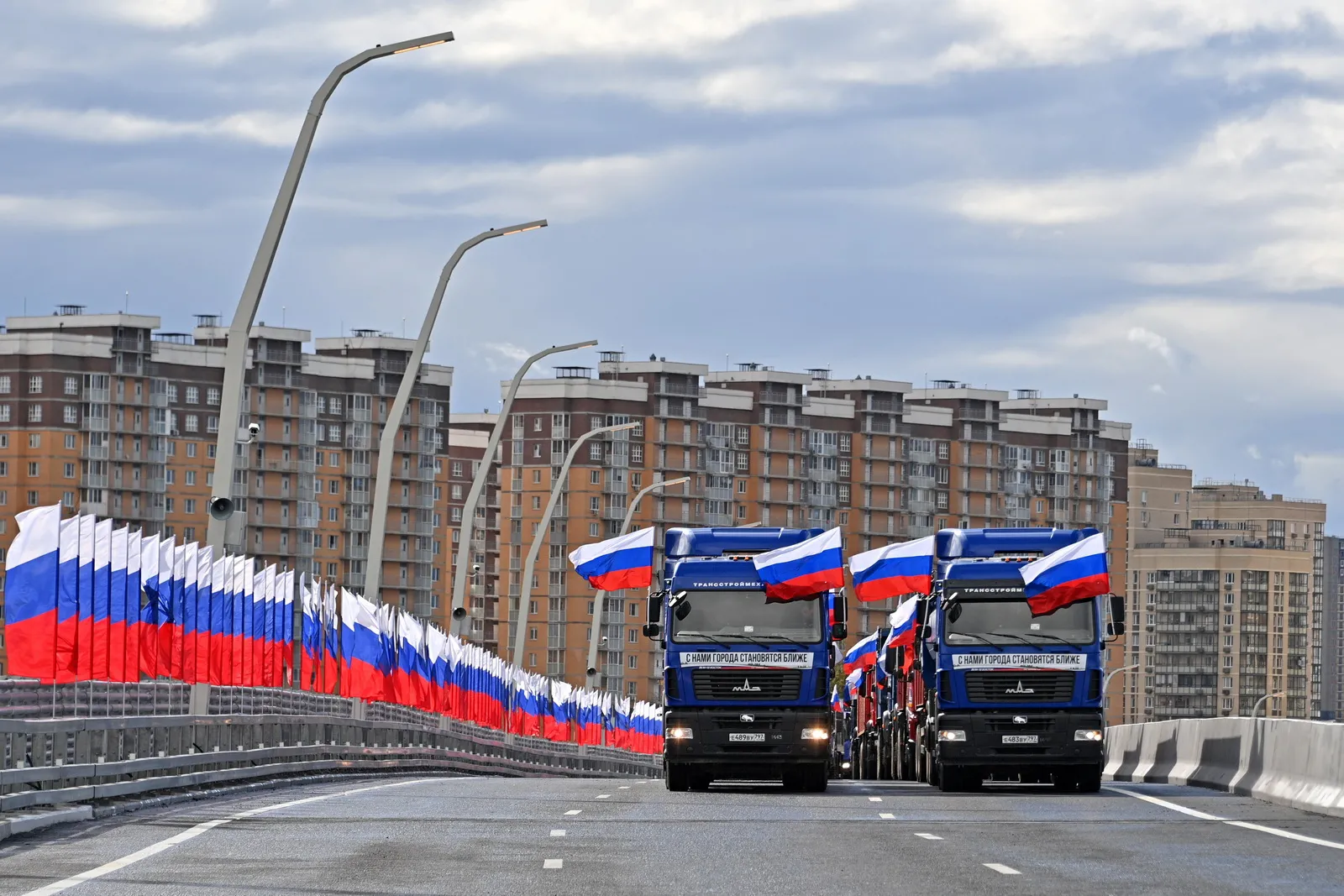 тельства в северном направлении. Таким образом, диаметр насквозь через мегаполис соединит трассу М12 и трассу М11 до Санкт-Петербурга. Это важный этап в развитии международного транспортного маршрута России», – отметил Владимир Путин перед тем, как по трассе пошла автоколонна с флагами.