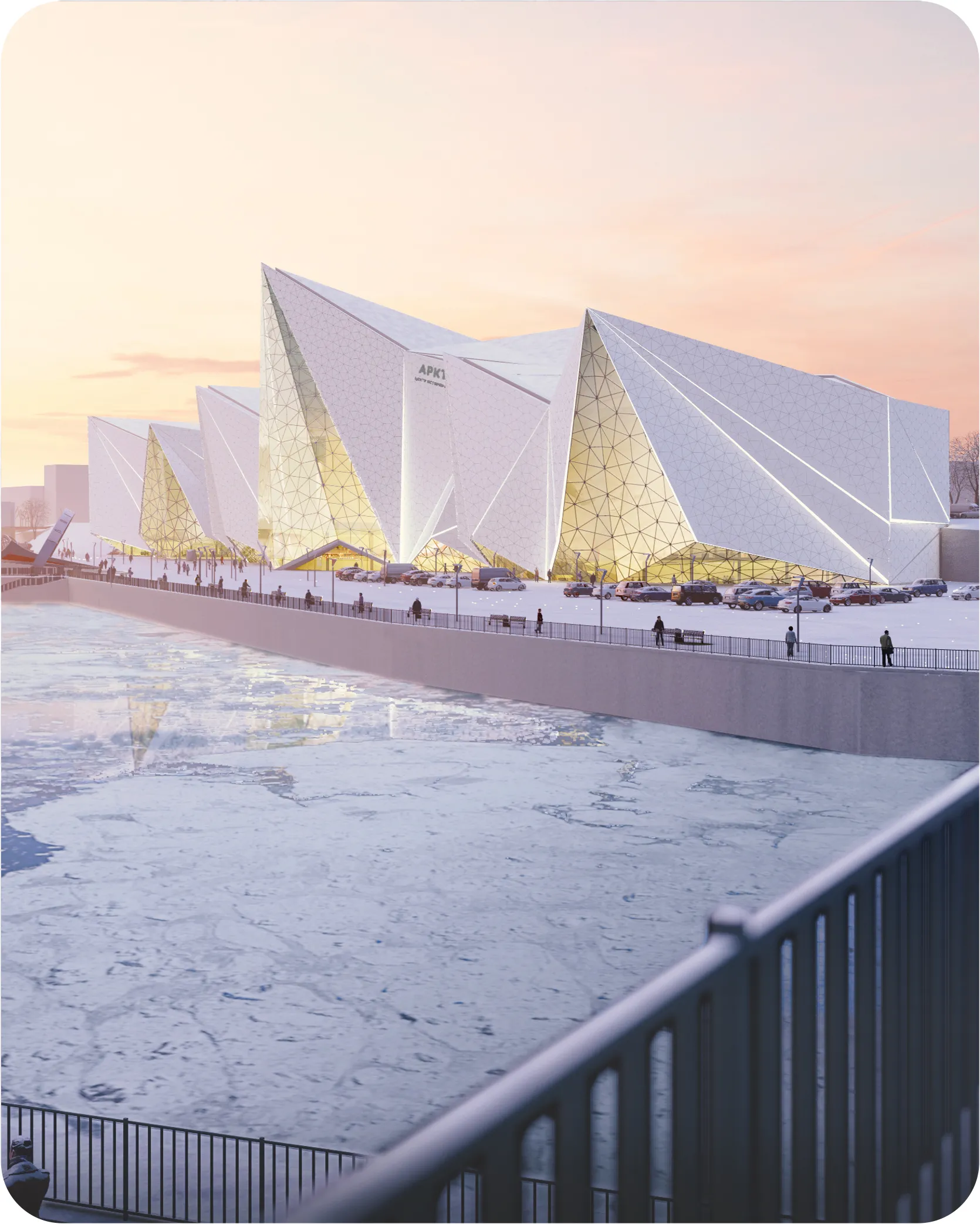 Архитектурный облик музея, созданный командой Lorem ipsum, стал вызовом для команды инженеров. Внешне он напоминает глыбы льда с треугольными гранями фасадов. Самая высокая точка «Аркториума» – почти 50 метров (сопоставимо с 16-этажным домом), а максимальный пролет внутренних пространств превышает 40 метров. И при этом внутри не будет массивных колонн, перекрывающих обзор. Основную нагрузку берут на себя внешние стены сложной конфигурации, а внутренние опоры используются точечно – для организации антресолей и галерей.