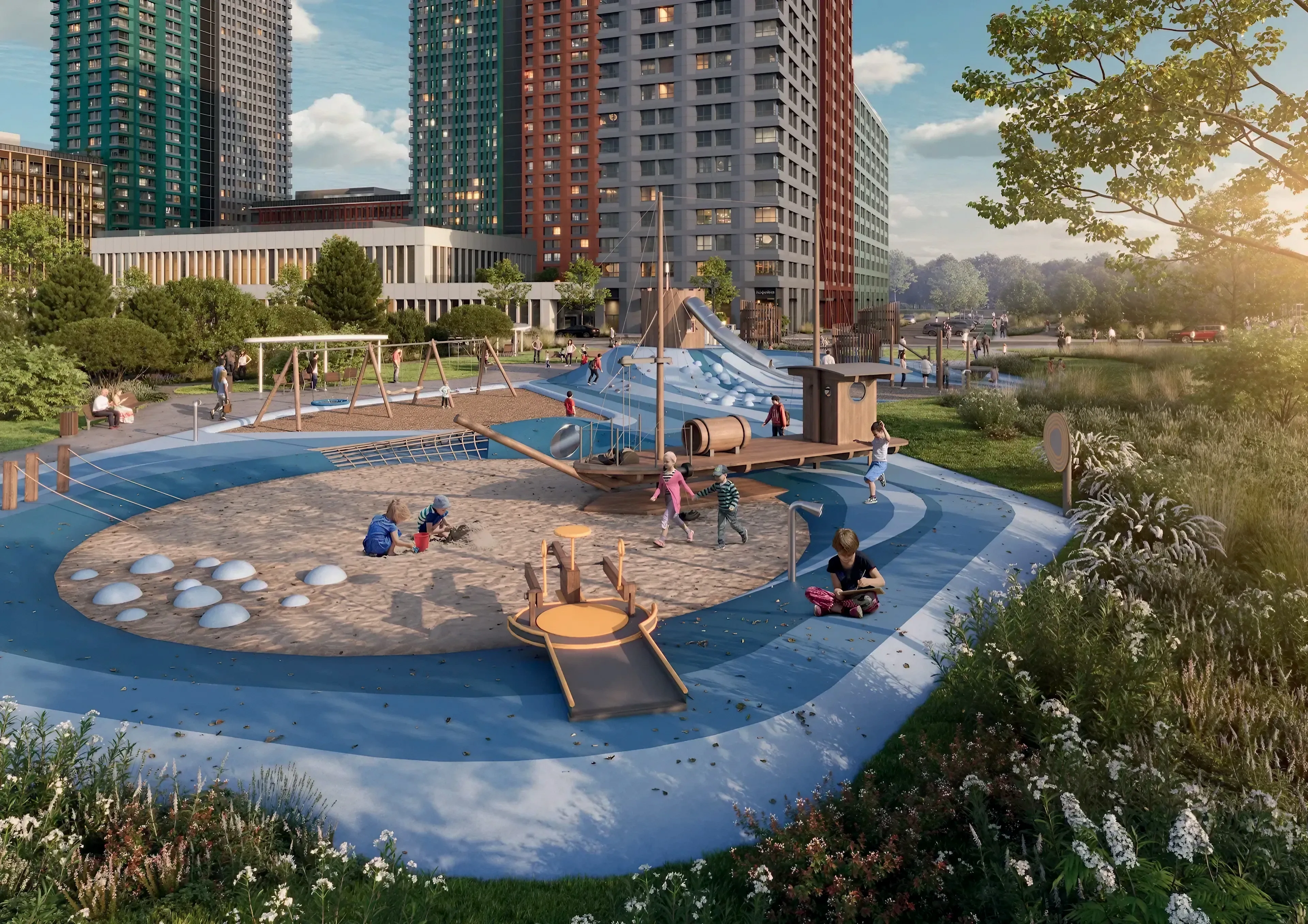Безусловное достоинство программы в том, что она призвана улучшить качество городской среды, создать комфортные условия для жизни, работы и отдыха. Следуя этим принципам, девелоперы в рамках проектов строят не только современное жилье, но и необходимую инфраструктуру, включая социальные и деловые объекты: школы, детские сады, поликлиники, торгово-развлекательные центры, спортивные комплексы.