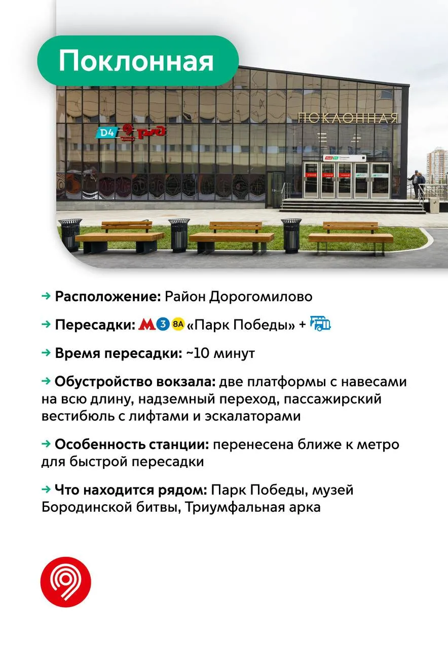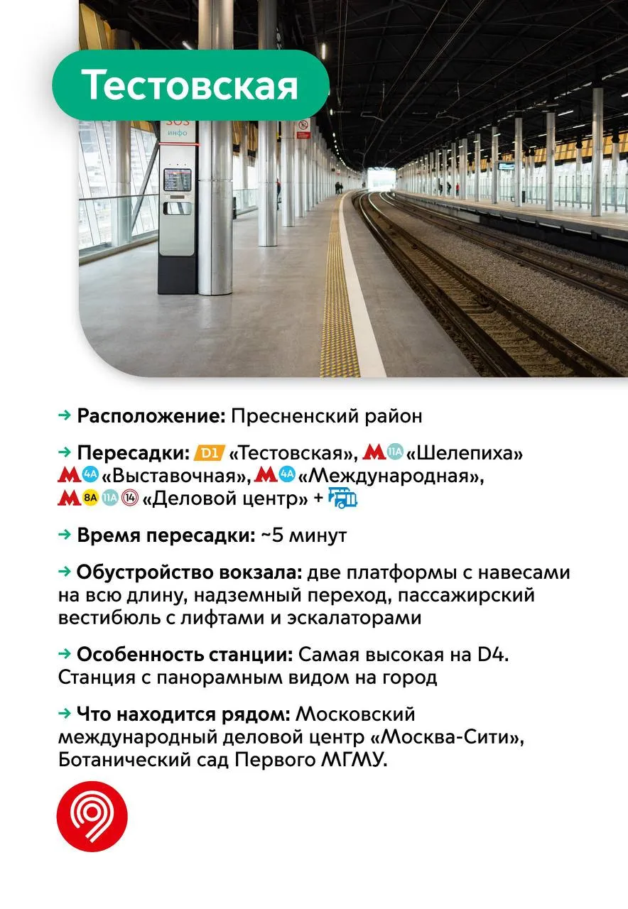 «9 сентября запустили D4 «Калужско-Нижегородский» – это диаметр с наибольшим количеством московских городских вокзалов — их 24. Три из них — Поклонная, Кутузовская, Тестовская расположены на новой соединительной ветви, которая была построена специально для этого диаметра. Эти вокзалы находятся в востребованных районах, где много точек притяжения, и мы уверены, что они улучшат транспортную доступность не только для местных жителей, но и для всех пассажиров D4», – рассказал руководитель департамента транспорта и развития дорожно-транспортной инфраструктуры Максим Ликсутов.