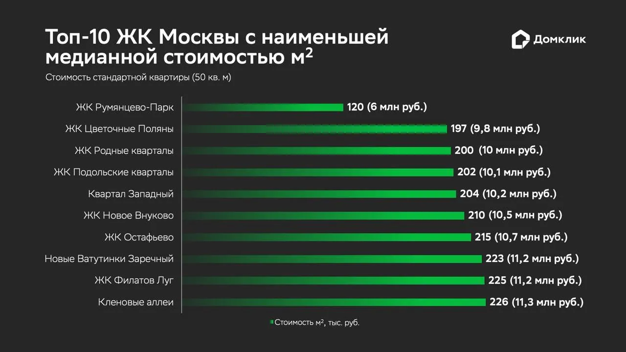 Эксперты проанализировали цены в новостройках за квадратный метр на конец августа 2024 года. Также они вычислили стоимость стандартной квартиры (произведение медианной стоимости квадрата и стандартной площади 50 квадратных метров). В исследовании не учитывали апартаменты.