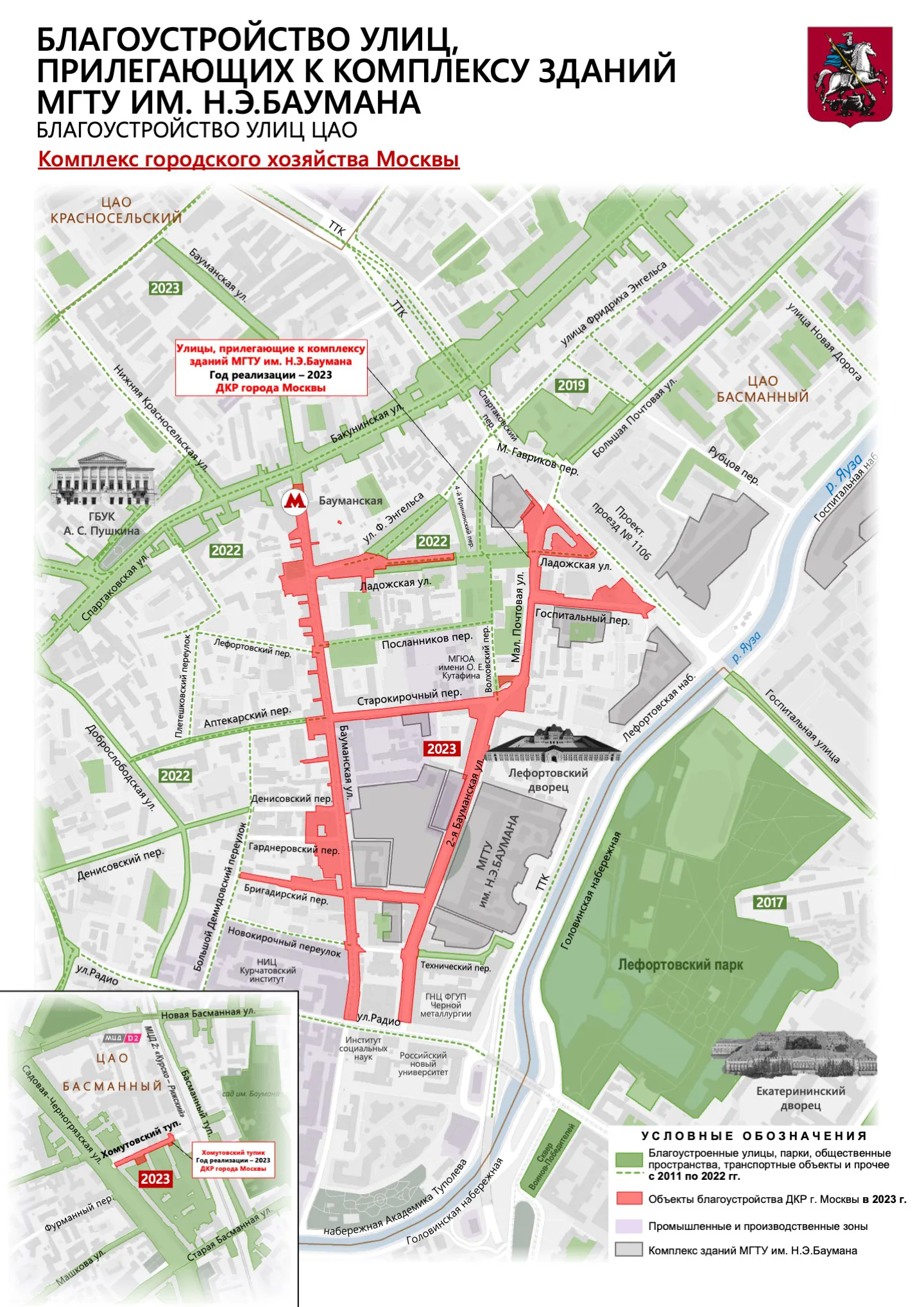 На территории разбили свыше 14 тыс. кв. метров газона, а поздней осенью планируется высадить порядка 1000 новых деревьев и кустарников. «Благоустройство улиц в районе МГТУ им. Н.Э. Баумана позволило создать качественное общественное пространство в одном из живописных уголков старой Москвы.