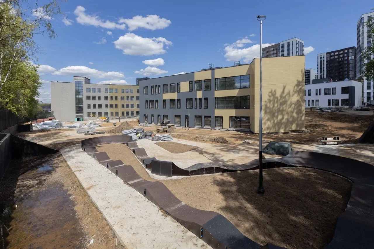 На прилегающей территории образовательного центра будет обустроено пространство для боулдеринга с уличным скалодромом, памп-трек, стадион с трибуной и центральная площадь с амфитеатрами для общешкольных и районных мероприятий. Эта территория создается как общественное пространство, которое усилит интеграцию объекта в городскую ткань. Любой житель района сможет прийти сюда просто на прогулку, на площадку с ребенком или чтобы принять участие в районных мероприятиях.