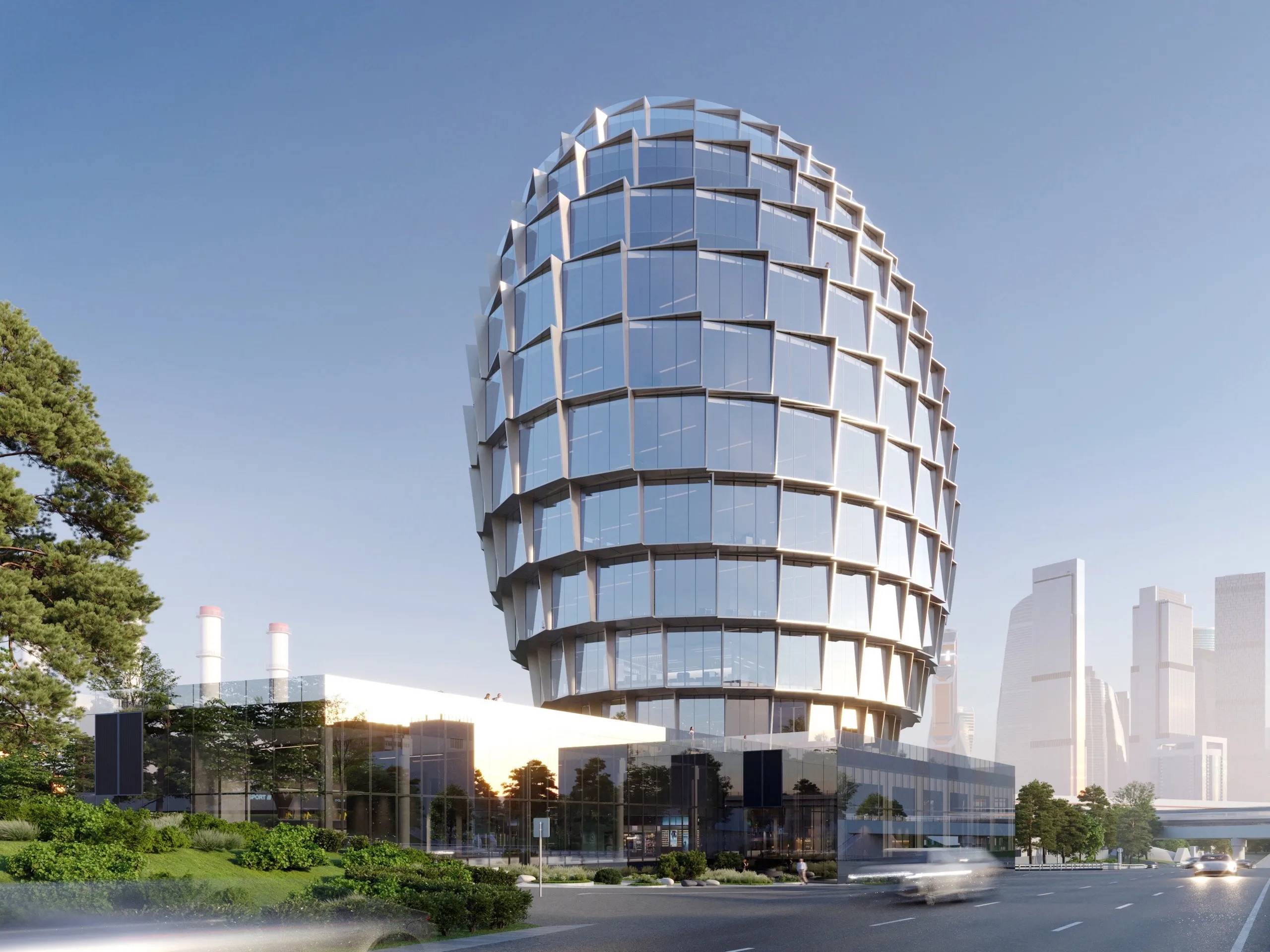 В Пресненском районе Москвы на 2-й Магистральной улице планируют возвести бизнес-центр «Шелепиха». Здание сложной ступенчатой формы из тонированного стекла и металла будет по форме напоминать яйцо. Главный архитектор столицы Сергей Кузнецов рассказал об отличительных деталях делового комплекса: «Проектом предусматривается строительство 11-этажного офисного здания площадью около 18 тысяч кв. метров. Комплекс имеет выразительную архитектуру: основной стеклянный объем овальной формы располагается на ступенчатом стилобате. Для отделки фасадов используют панели стального цвета, структурное остекление».