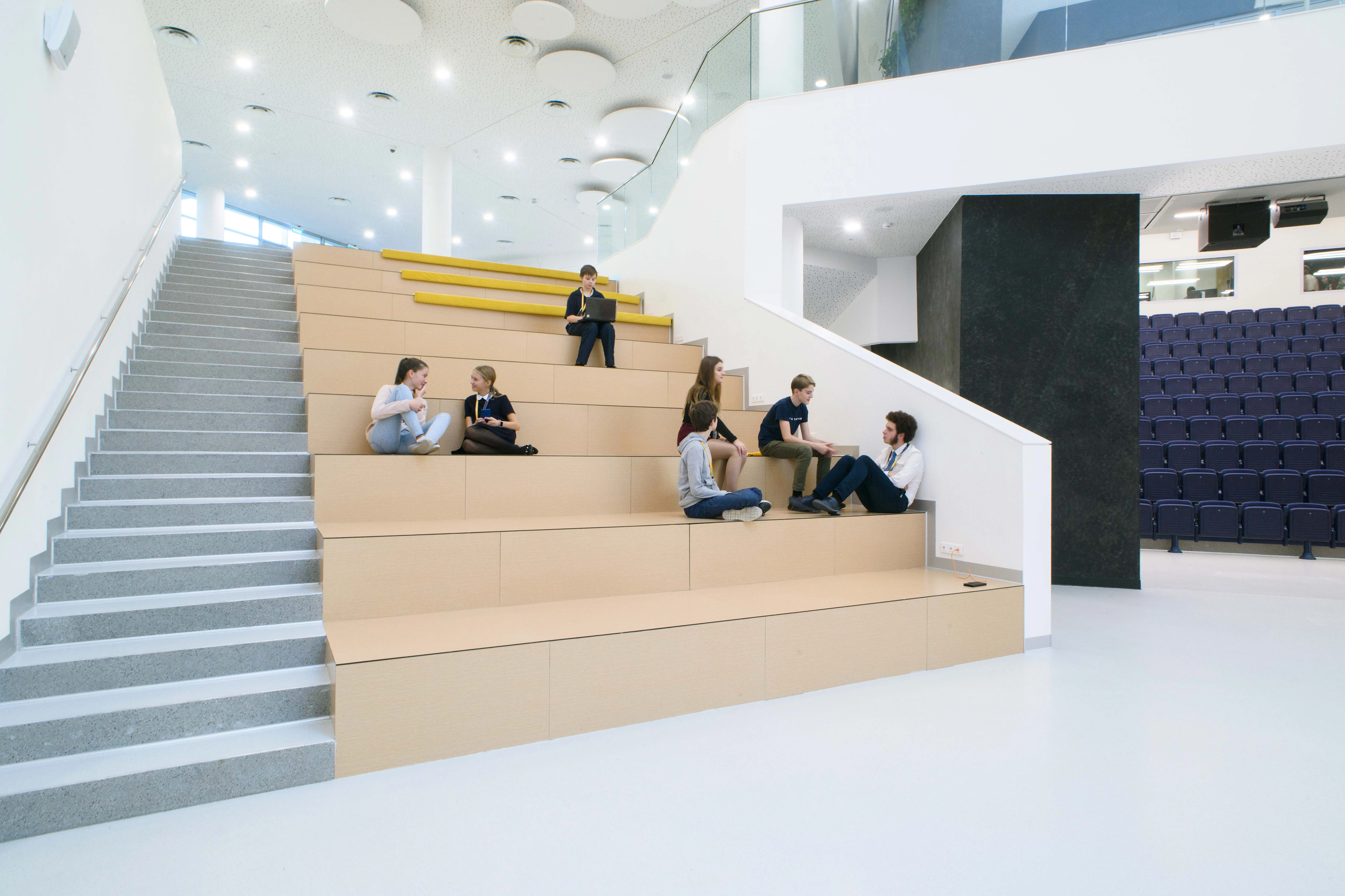 теперь в классах многофункциональная штабелируемая мебель и прозрачные перегородки. Произошла замена предметных кабинетов универсальными – тематические пространства превратили в междисциплинарные исследовательские лабораторные комплексы. На смену традиционным библиотекам пришли многофункциональные медиатеки.