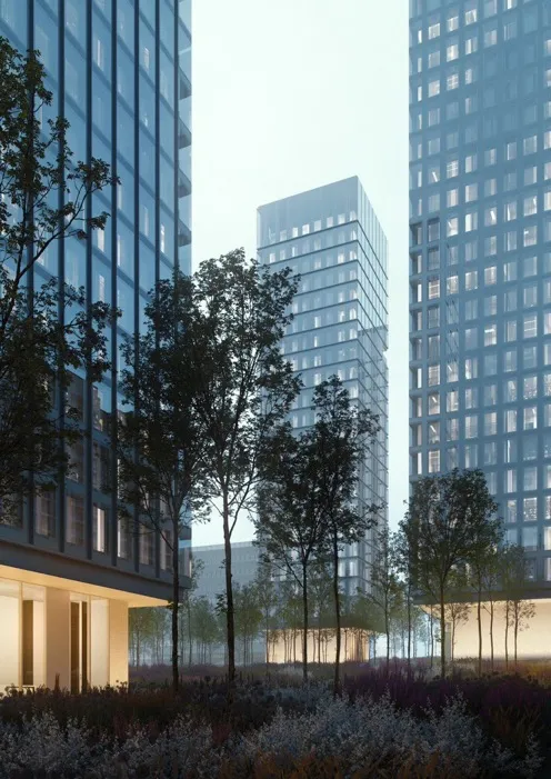 Квартал состоит из девяти корпусов, шесть из которых жилые — их этажность варьируется от девяти до 23. Архитектура зданий выполнена в стиле элегантного минимализма. Концептуальные фасады спроектировало бюро «Цимайло, Ляшенко и партнёры».