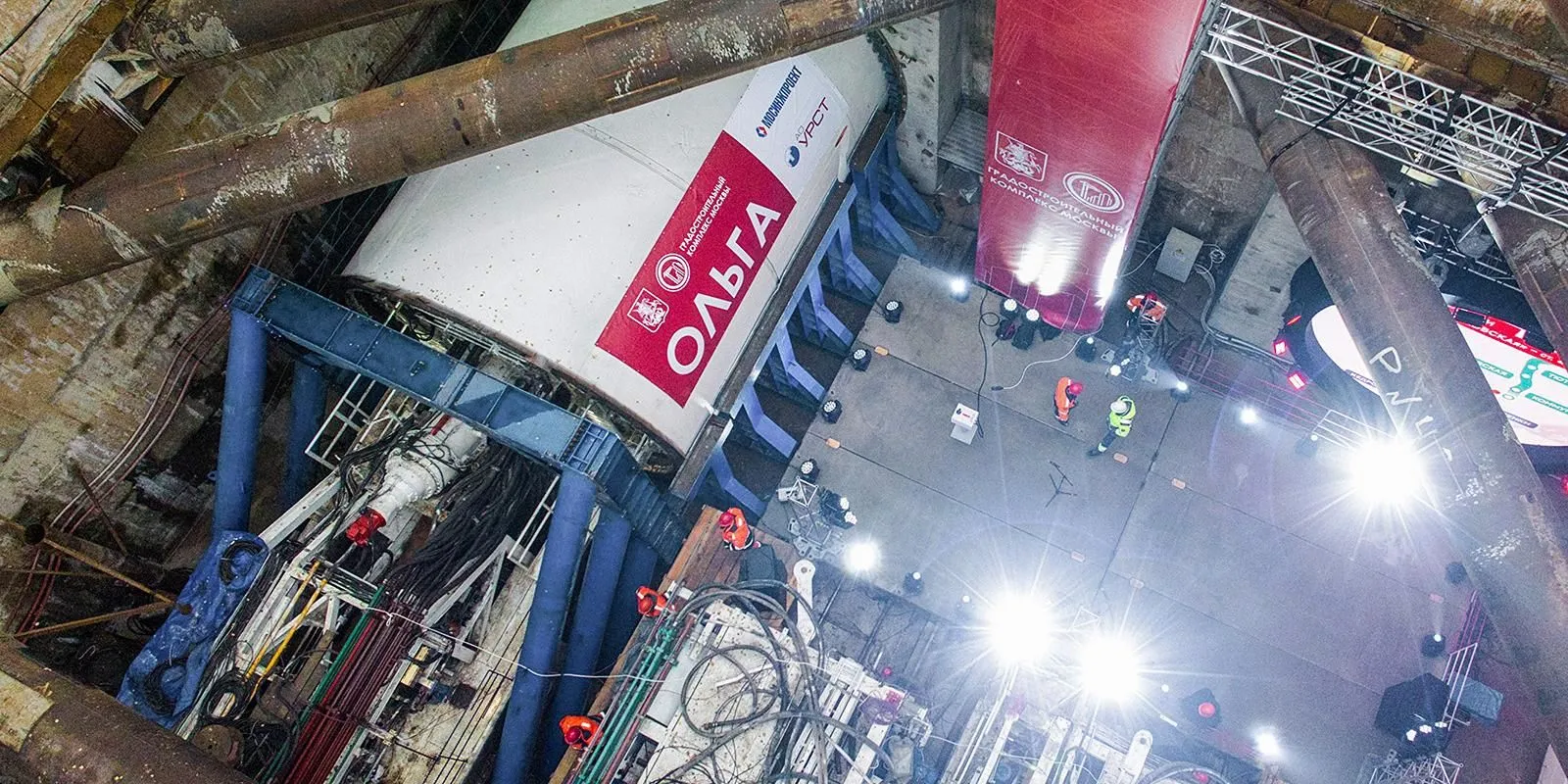 Щит «Ольга», который прокладывает левый перегонный тоннель, монтировали в необычно компактной стартовой камере размером всего 30 на 25 метров. Обычно для такого оборудования требуется котлован длиной более 100 метров. Чтобы разместить комплекс в ограниченном пространстве, специалисты применили технологию раздельного старта — щит собирали поэтапно, постепенно вводя в грунт и подключая комплектующие.
