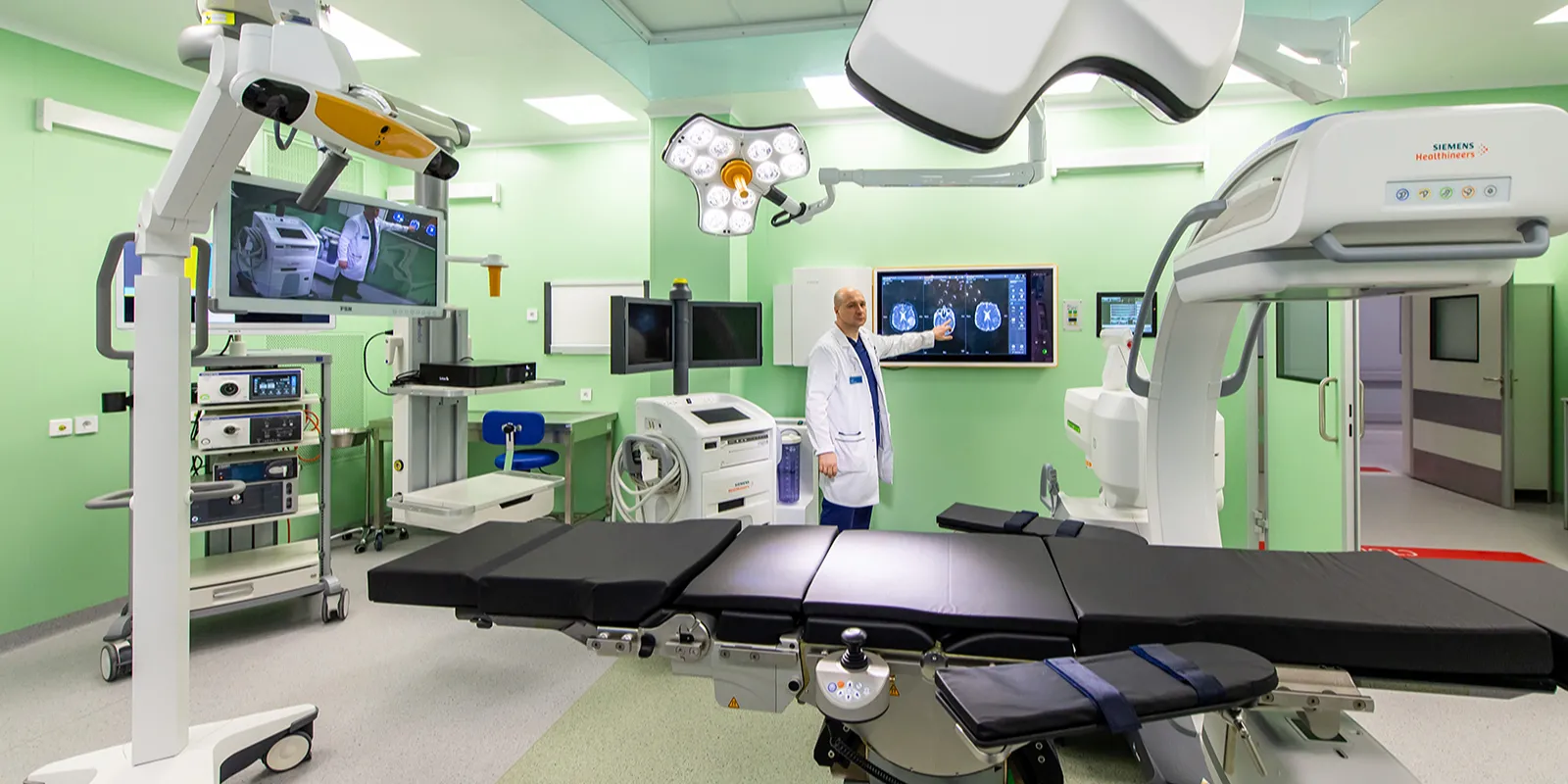 В гибридных операционных могут одновременно работать нейрохирурги, рентгенэндоваскулярные и сердечно-сосудистые хирурги, эндоскописты, травматологи, специалисты по лучевой диагностике и другие врачи. Это позволит в разы увеличить число проводимых операций.