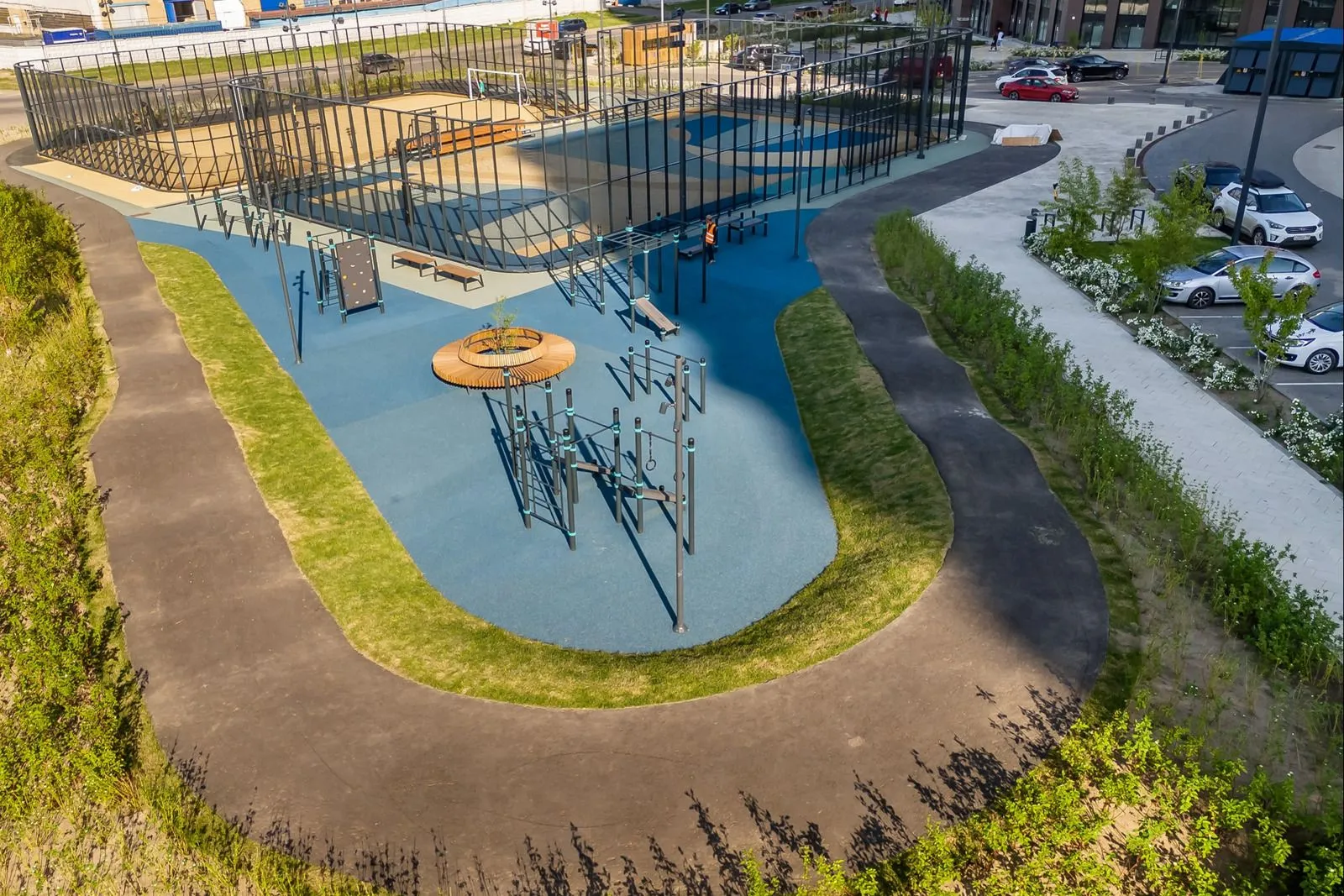 «Новый кластер общей площадью свыше 2,5 тысячи квадратных метров поделен на четыре функциональные зоны — это площадки для игровых видов спорта, уличные тренажеры, памп-трек для взрослых и детей от шести лет, а также трибуна для болельщиков. Заниматься здесь смогут все жители района, в том числе ученики построенной рядом школы», — рассказал Антон Слободчиков.