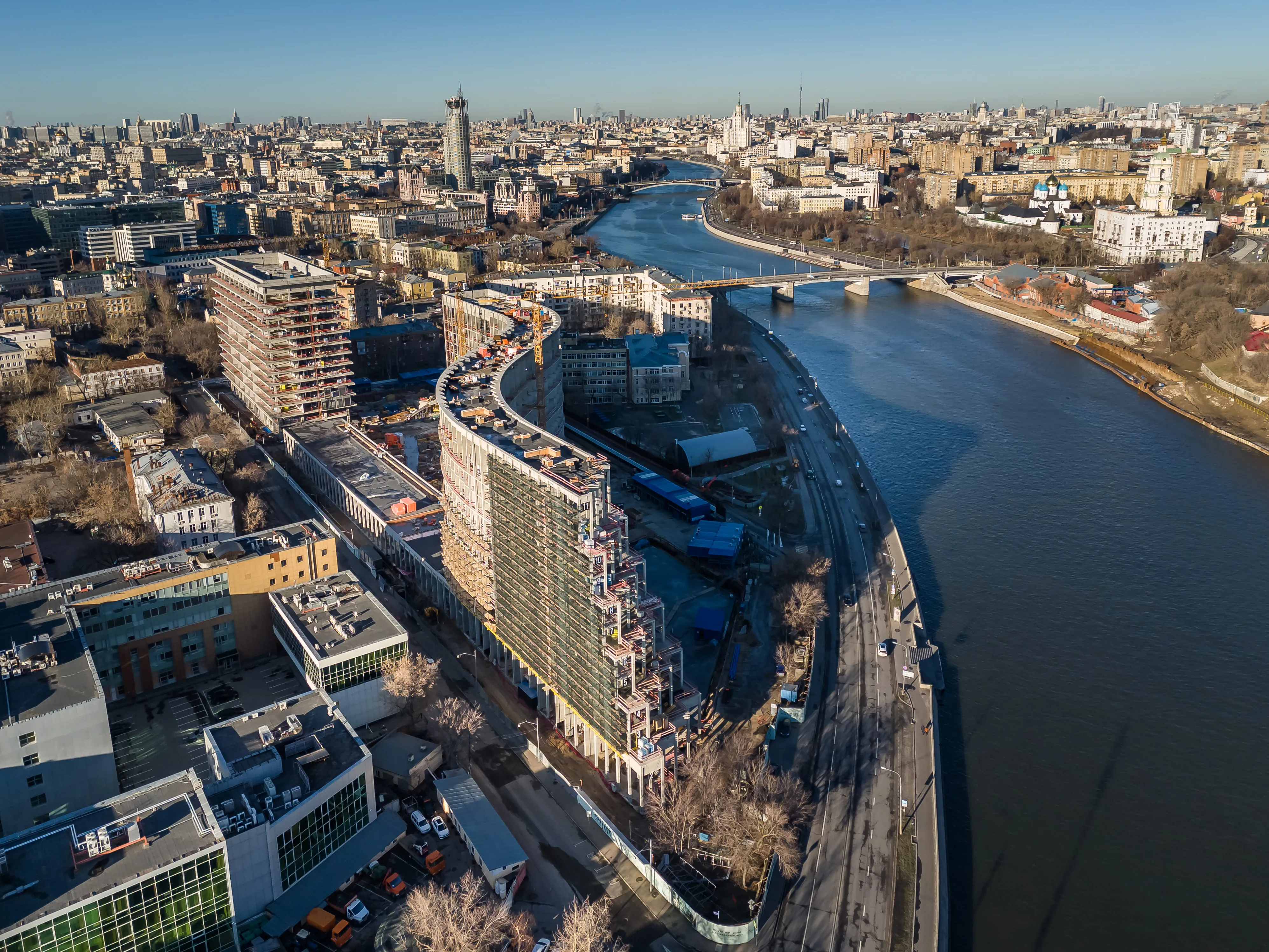 Генеральный подрядчик ФОДД выполнил эти работы суммарно за 16 месяцев, всего было залито около 57 тыс. кубометров бетона. С завершением монолита уже полностью сформирован волнообразный облик здания-скульптуры в виде волны и уже можно оценить концептуальную архитектуру от бюро «Цимайло Ляшенко и Партнеры».