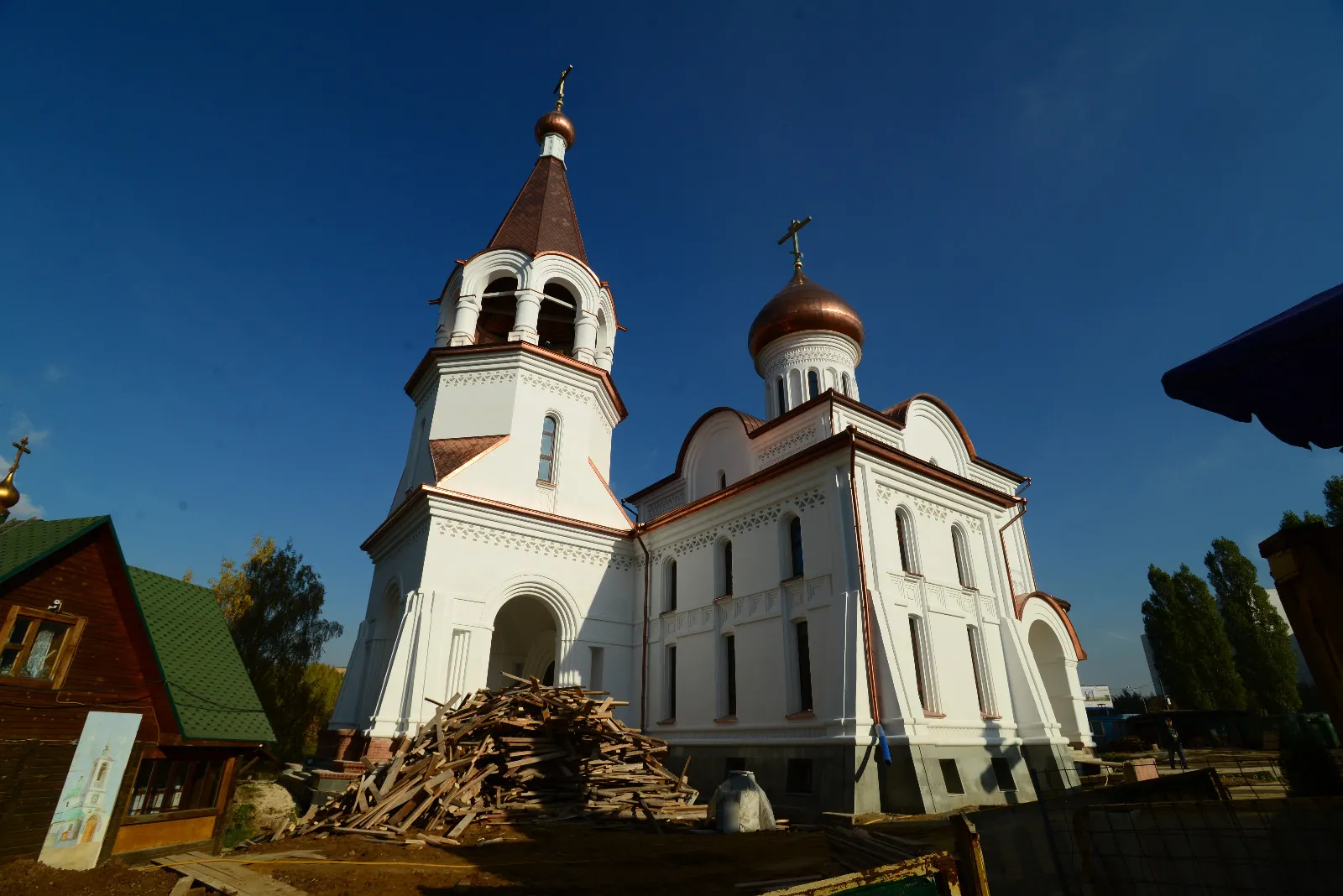 Работы начались в 2020-м, и сегодня основные этапы строительства уже завершены. Храм увенчан медными куполами с золотыми крестами, кровля полностью готова, установлены окна. До конца года строители планируют завершить монтаж дверей. Активно продвигается монтаж теплых полов, ведется подключение тепловых сетей.