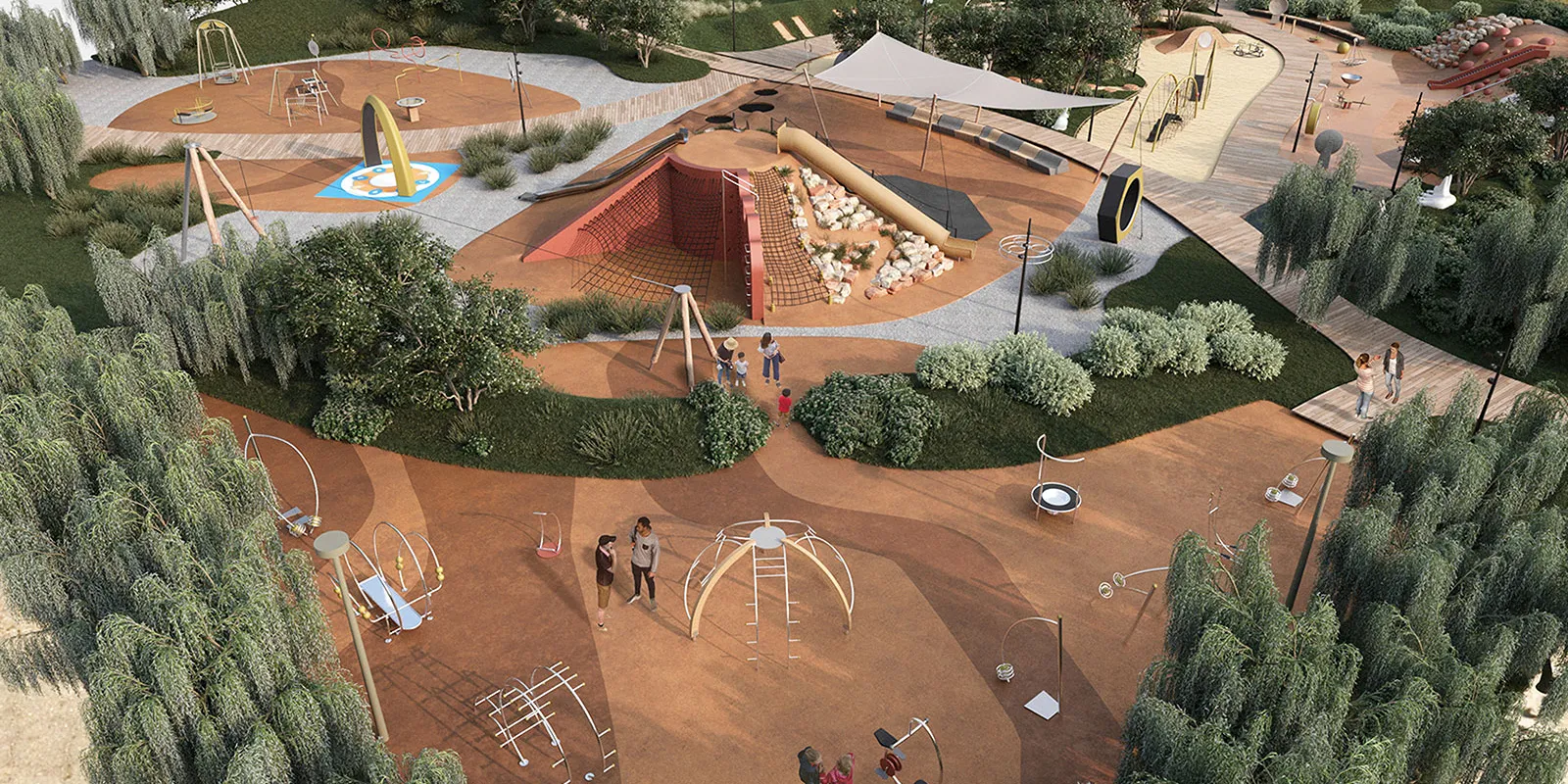 На детской площадке будут предусмотрены игровые зоны для детей различных возрастных групп (так сгруппировано игровое оборудование), а также пространства для маломобильных групп населения, зона ворк аута и зона тихого отдыха. Окружена детская площадка листовыми кустарниками для создания уюта и комфортности отдыхающих.