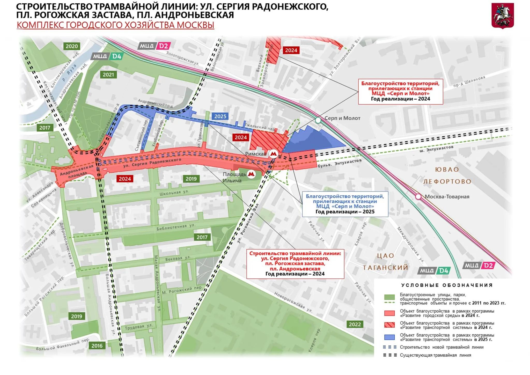 Первый участок пройдет по улице Сергея Радонежского от площади Ильича до Андроньевской площади. «Тем самым мы сможем соединить существующие линии и сократить пассажирам путь до Курского вокзала», – написал глава города. В будущем планируется запустить новый прямой маршрут по шоссе Энтузиастов до Курского вокзала.