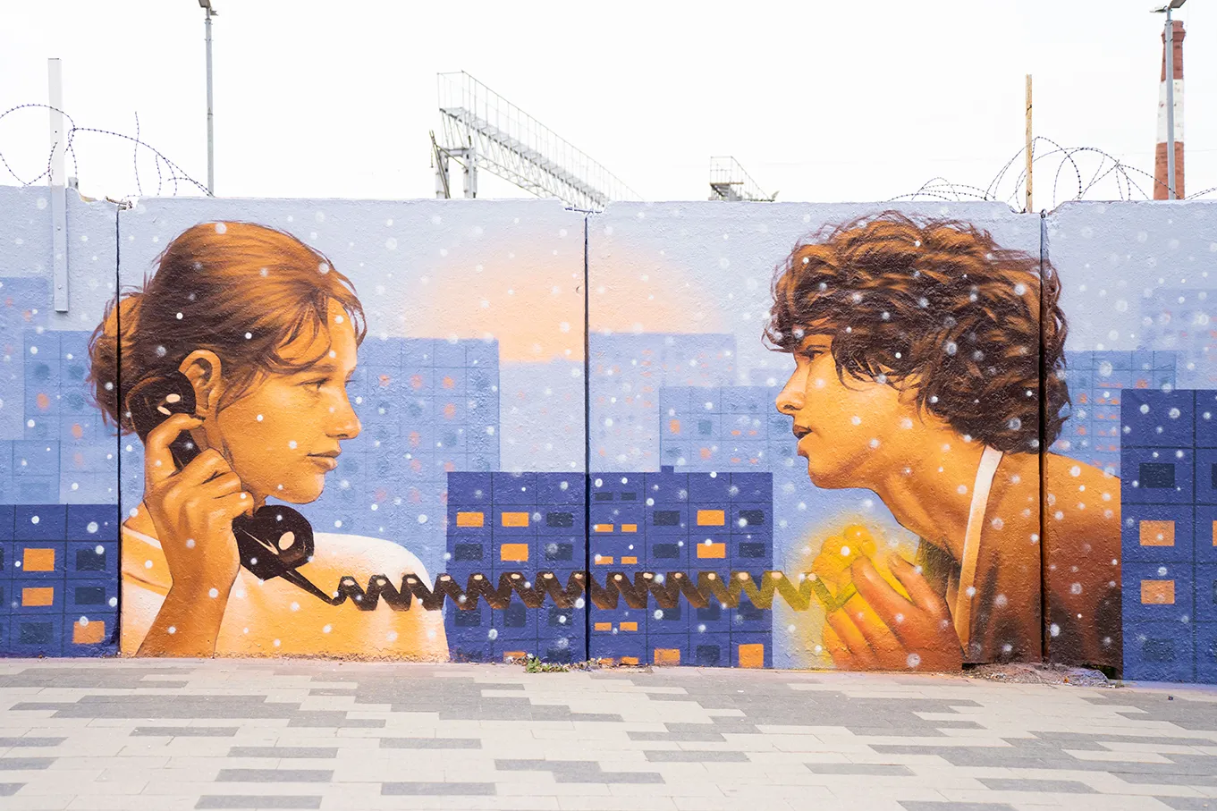 Любовь – главный, судя по сюжетам авторов работ, инструмент противостояния наступающему холоду зимнего сезона. Это и отношения между людьми, о чем напоминает стрит-артист Антон Спутник, запечатлевший влюбленную парочку на фоне холодных панельных домов города. Это и преданность своим хозяевам обитателей московских квартир – котов и кошек. Именно таков сюжет мурала художника SY, Виталия Царенкова. Кот, дома, машины, звезды и месяц – все выглядит схематично, но при этом не лишено настроения. Сережа acse напомнил о гастрономических радостях осени, реалистично изобразив ярко-оранжевую тыкву и предметы керамики. И это тоже про уют – про то, как может украсить жизнь хорошая кухня, о том, что дарит человеку природа. Герои мурала Никиты Ходака выглядят слегка загруженными, глядя на город с высоты. Но город сверкает огнями, цветами, удивляет ритмом и скоростью. Остается только синхронизировать свою и его энергию, полюбить мегаполис. В стилистике компьютерных пазлов выполнено и произведение художницы NADYA.O. Атрибутику современного города и быта – вышки сотовой связи, переходы зебры, схемы движения – обрамляют детские рисунки и портрет подростка в наушниках. Наверное, композиция должна напомнить родителям о детях, которые остро реагируют на тепло и семейное счастье. Самым эмоциональным можно считать сюжет картины Дмитрия Дренина, запечатлевшего семейство снегирей – ярких красногрудых птиц, почти исчезнувших с улиц города. Работа выполнена в манере жостовского промысла.