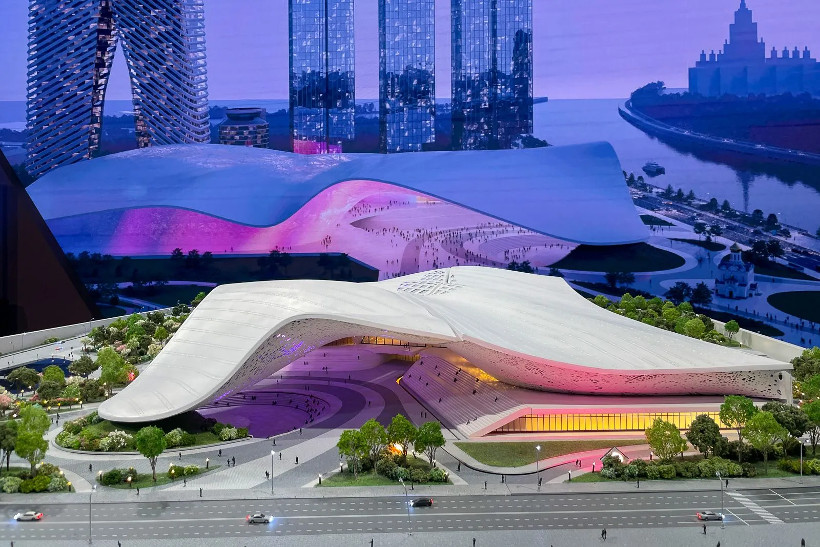 Ключевой элемент — мультимедийный фасад, который сможет менять визуальный контент в зависимости от событий: от государственной символики до тематических инсталляций.