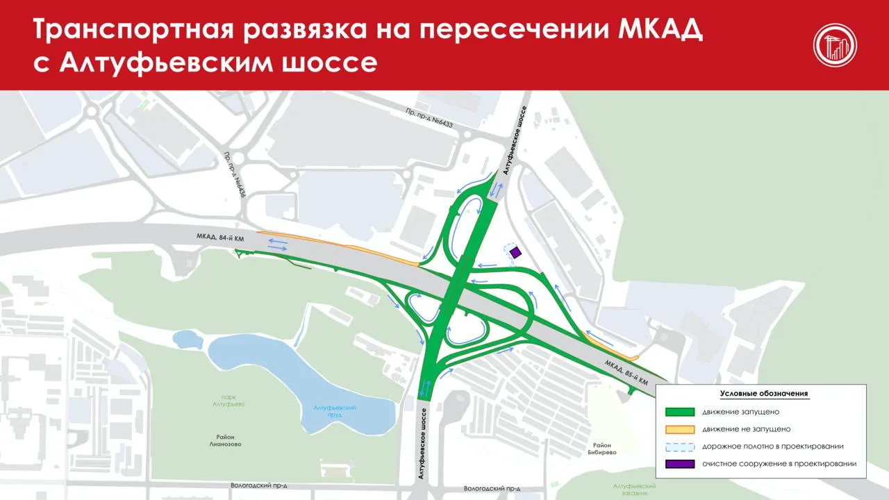 Реконструкцию развязки МКАД с Алтуфьевским шоссе начали в 2020 году и завершили в сентябре 2024-го. Проект предусматривал замену устаревшего сооружения клеверного типа на современную развязку с направленными съездами c большей пропускной способностью. «Сложность работ заключалась в том, что они шли практически без остановки движения транспорта. Теперь перемещаться по МКАД стало быстрее и безопаснее. Сегодня мы открыли последнюю такую развязку — на Алтуфьевском шоссе», — написал Сергей Собянин в своем телеграм-канале. Всего специалисты рамках построили 5,4 километра дорог, включая два искусственных сооружения общей протяженностью более 0,8 километра.