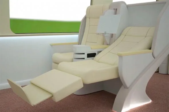 ОАО РЖД представило концепт поезда, который будет ходить между Москвой и Казанью. Он развивает скорость до 400 км/ч, что позволит добратся до «третьей столицы России» за 3,5 часа.