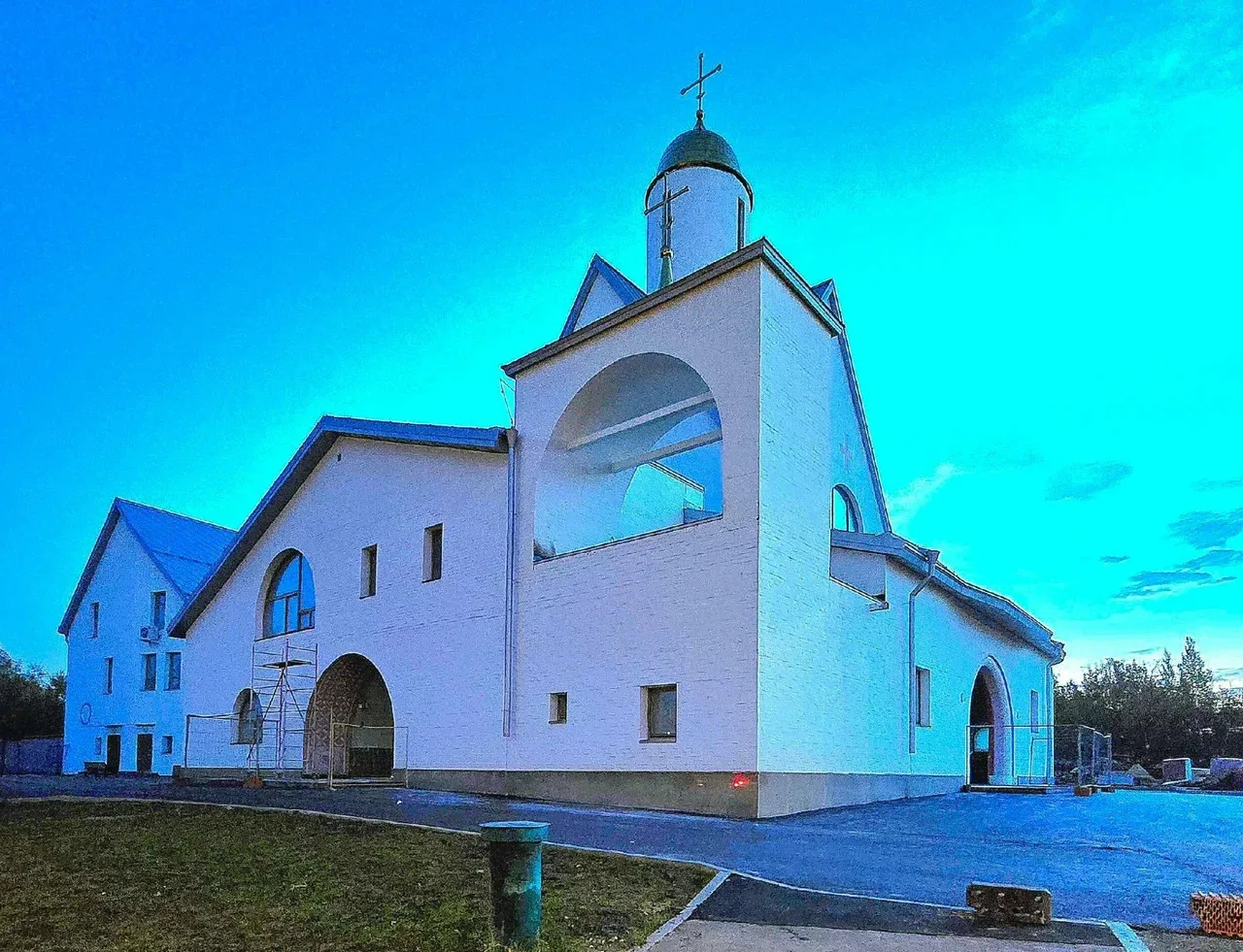К разработке котлована церкви Александра Невского на 400 прихожан строители приступили в 2016 году. Но сначала им пришлось расчищать участок от мин и снарядов. Оказалось, что это территория бывших артиллерийских складов времен Великой Отечественной войны. В 2018-м рабочие возвели стилобат будущей святыни, устроили алтарь, но работы приостановили в связи с нехваткой средств. А возобновили их лишь в 2022-м. В сентябре 2023-го на строящийся храм установили освященные купола с крестами, а в феврале нынешнего завершили кровлю и общестроительные работы. Весной подняли на звонницу колокола. «До конца года оставались только фасадные и внутренние работы, связанные с отделкой и монтажом инженерных систем, а также благоустройством прилегающей территории. Все они идут по графику, несмотря на сложные моменты, связанные с расчисткой площадки и их финансированием, и сегодня практически завершены. На объекте трудятся 103 человека», – пояснил Владимир Ресин.