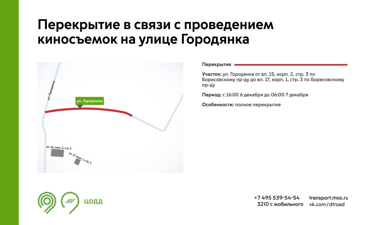 С 16:00 6 декабря до 06:00 7 декабря будет закрыт участок улицы Городянки.
