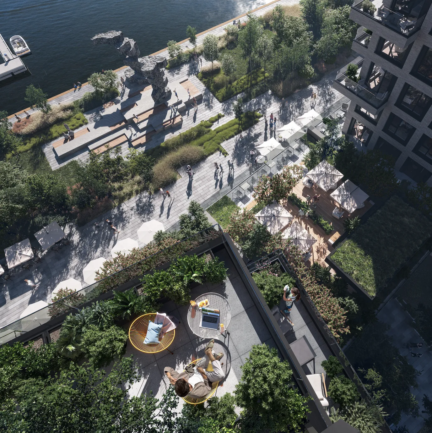Промышленное прошлое района бережно интегрируют в новую историю. Так, на набережной в квартале Portland девелопер FORMA планирует построить арт-променад со скульптурами из портового бетона. Брутальный бетон и тема ленд-арта также будут прослеживаться и в дизайне малых архитектурных форм, ландшафте дворов, променадов и других публичных пространств городского квартала.
