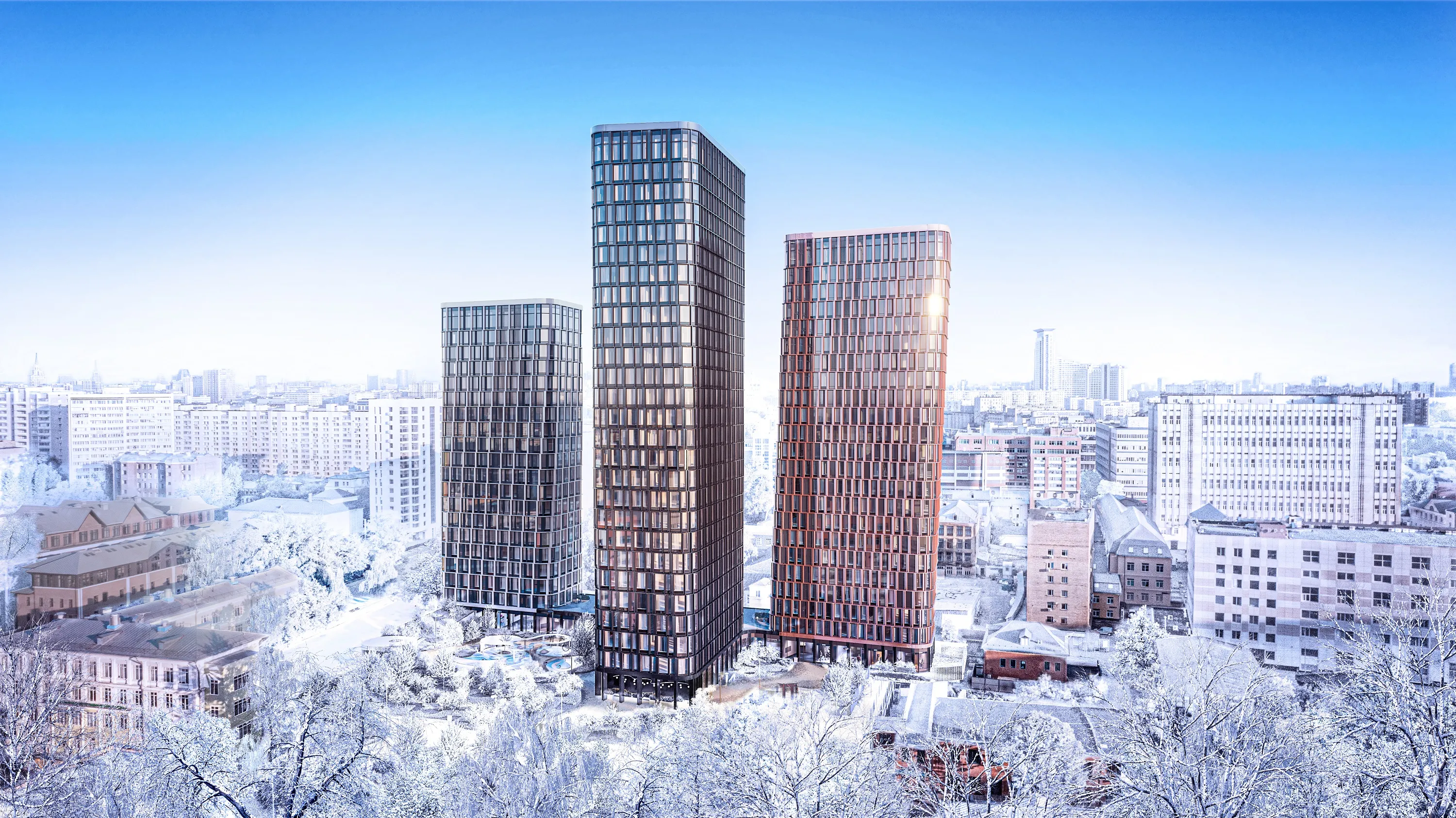Жилой квартал «Дом 56» состоит из трех башен футуристической архитектуры высотой 20, 23 и 27 этажей. Всего в проекте 510 квартир с панорамным остеклением. Проект отличает разнообразие планировочных решений: от эргономичных студий 27 кв. метров до просторных четырехкомнатных квартир площадью 127 кв. метров и нестандартных форматов с личными террасами и потолками высотой до 4,6 метров.