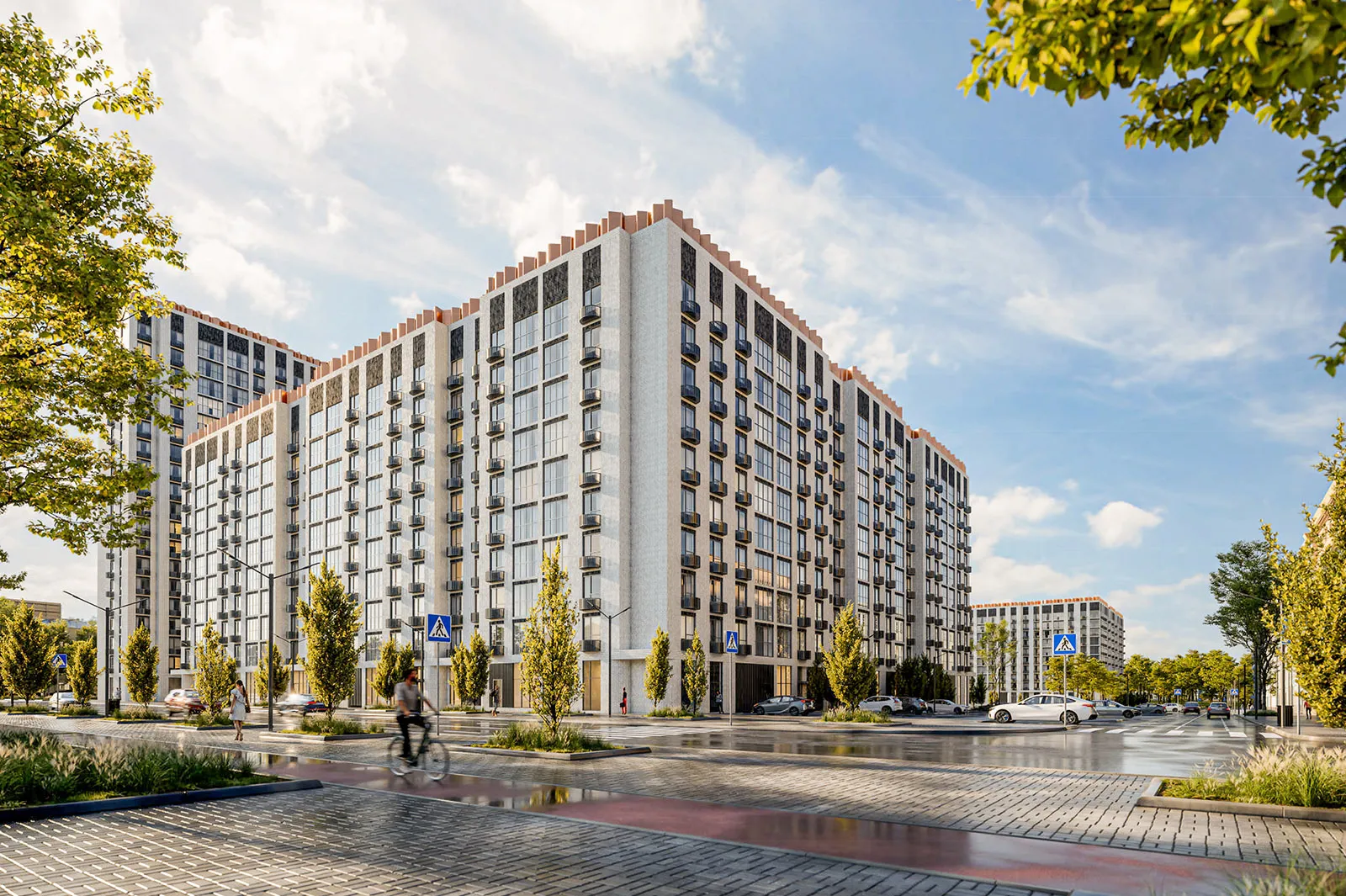 630 и 1000 кг. Рядом с домом оборудованы проезды и тротуары, установлены скамейки и урны, обустроены детская и спортивная площадки с резиновым покрытием, а также место для отдыха.