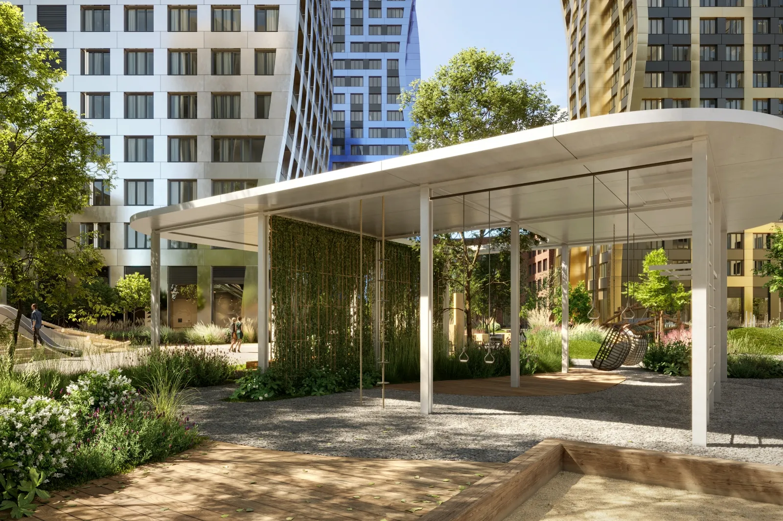 Поблизости оборудуют открытую зону «Пустыня» с различными пространствами, в том числе для игры в петанк и для воркаута. В квартале Portland появится набережная протяженностью 412 метров с велодорожками, к которой ведет центральный бульвар с зеленой аллеей.