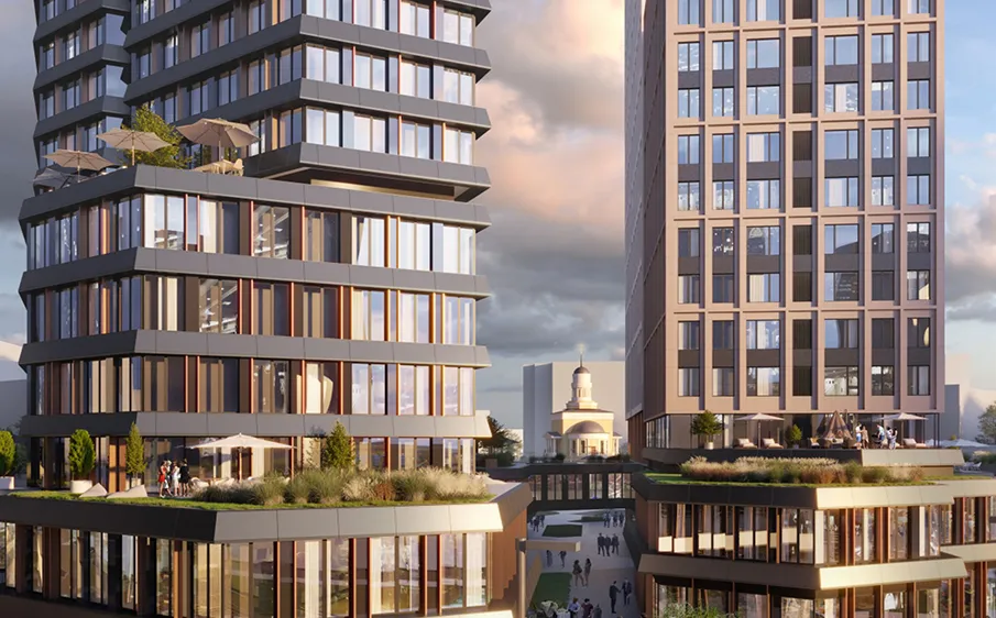 От новичка на новом рынке требуется многое: выверенный порядок действий, безошибочный по качеству продукт, умение соответствовать конъюнктуре в отношении цены и качества. И конечно, безукоризненный продукт, начиная с визуального решения. Вот почему за архитектурным проектом девелопер обратился к голландскому архитектурному бюро МЛА+, имеющему в своем портфеле 453 проекта, реализованные в разных странах мира, включая и Россию. Архитекторы предложили сдержанную элегантную форму, хорошо вписанную в существующее пространство территории.